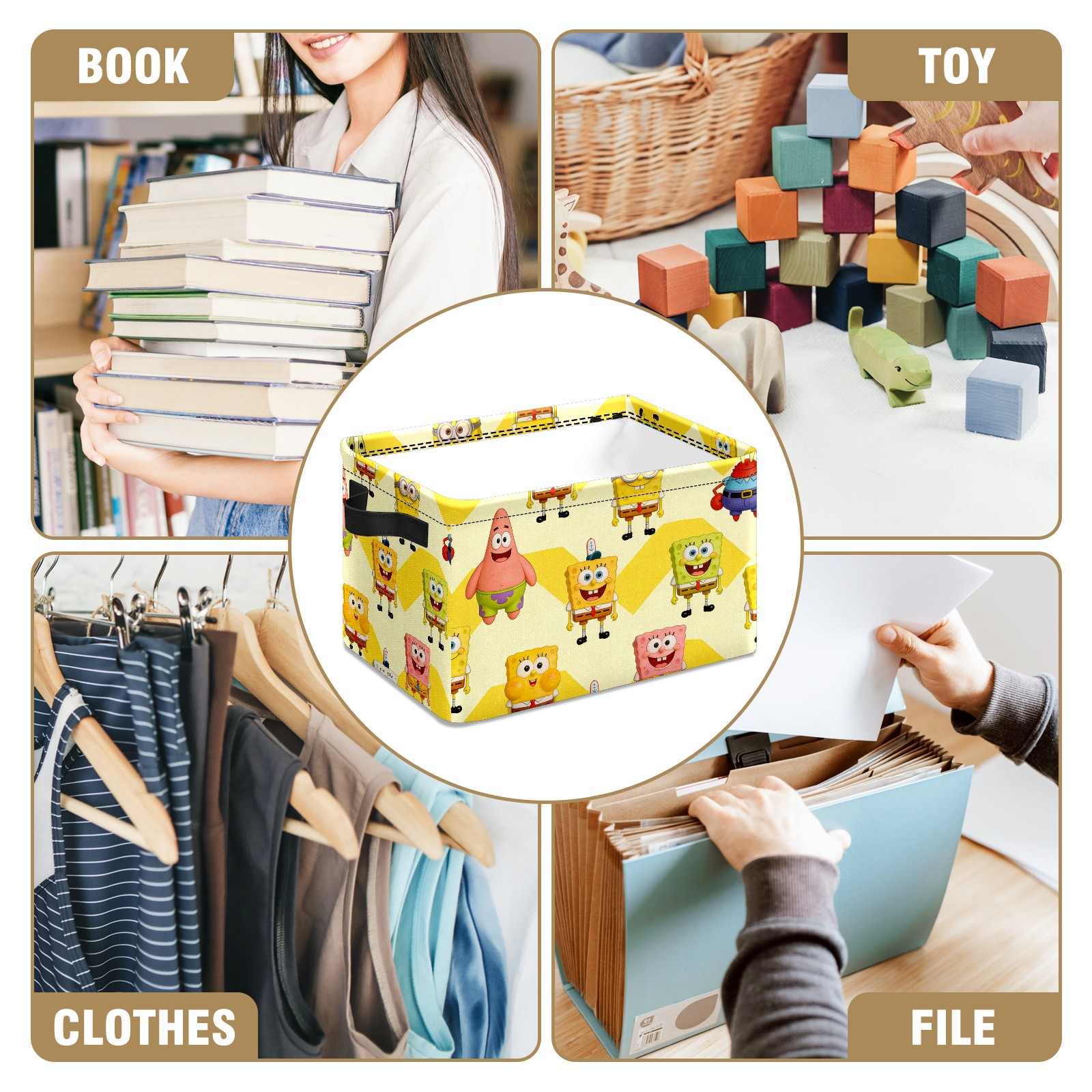 Foldable and Stackable Fabric Storage Basket for Home Organization with Handles, Decorative Closet Bins for Shelves and Laundry Storage( 创作经典IP图 (38))