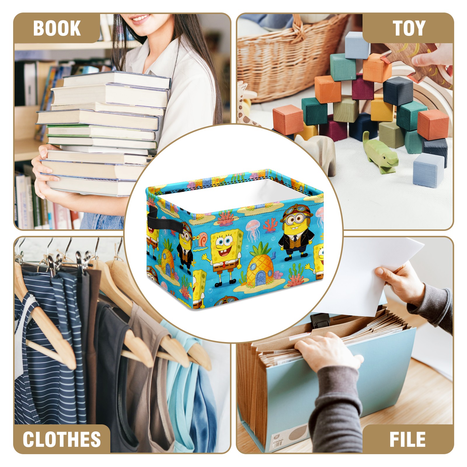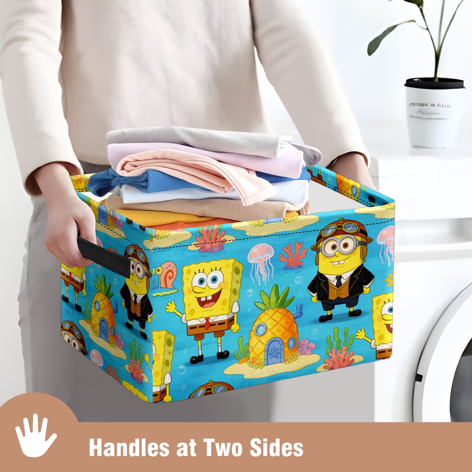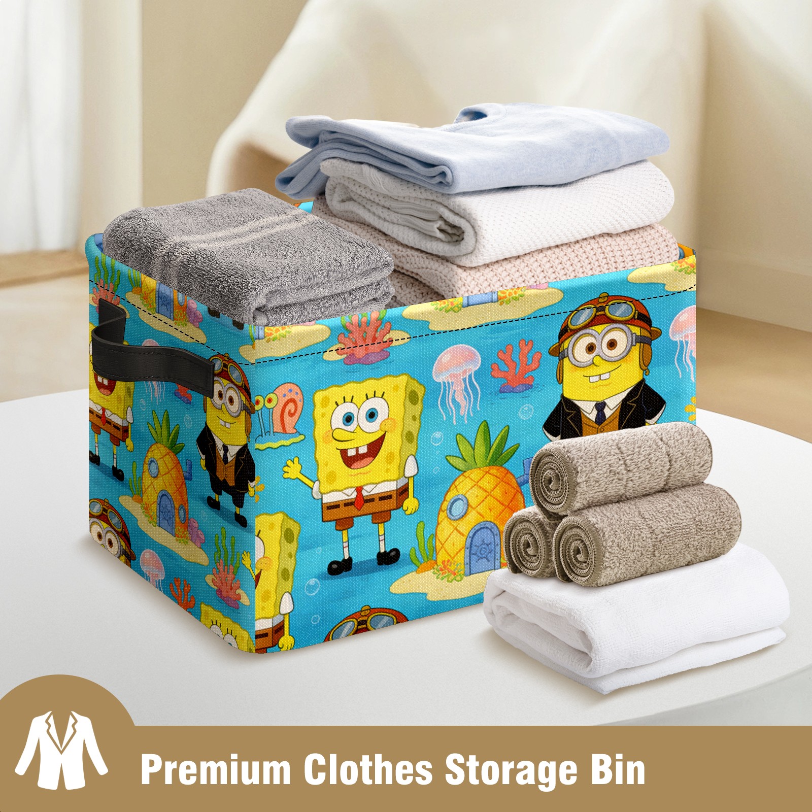 Foldable and Stackable Fabric Storage Basket for Home Organization with Handles, Decorative Closet Bins for Shelves and Laundry Storage( 创作经典IP图 (17))