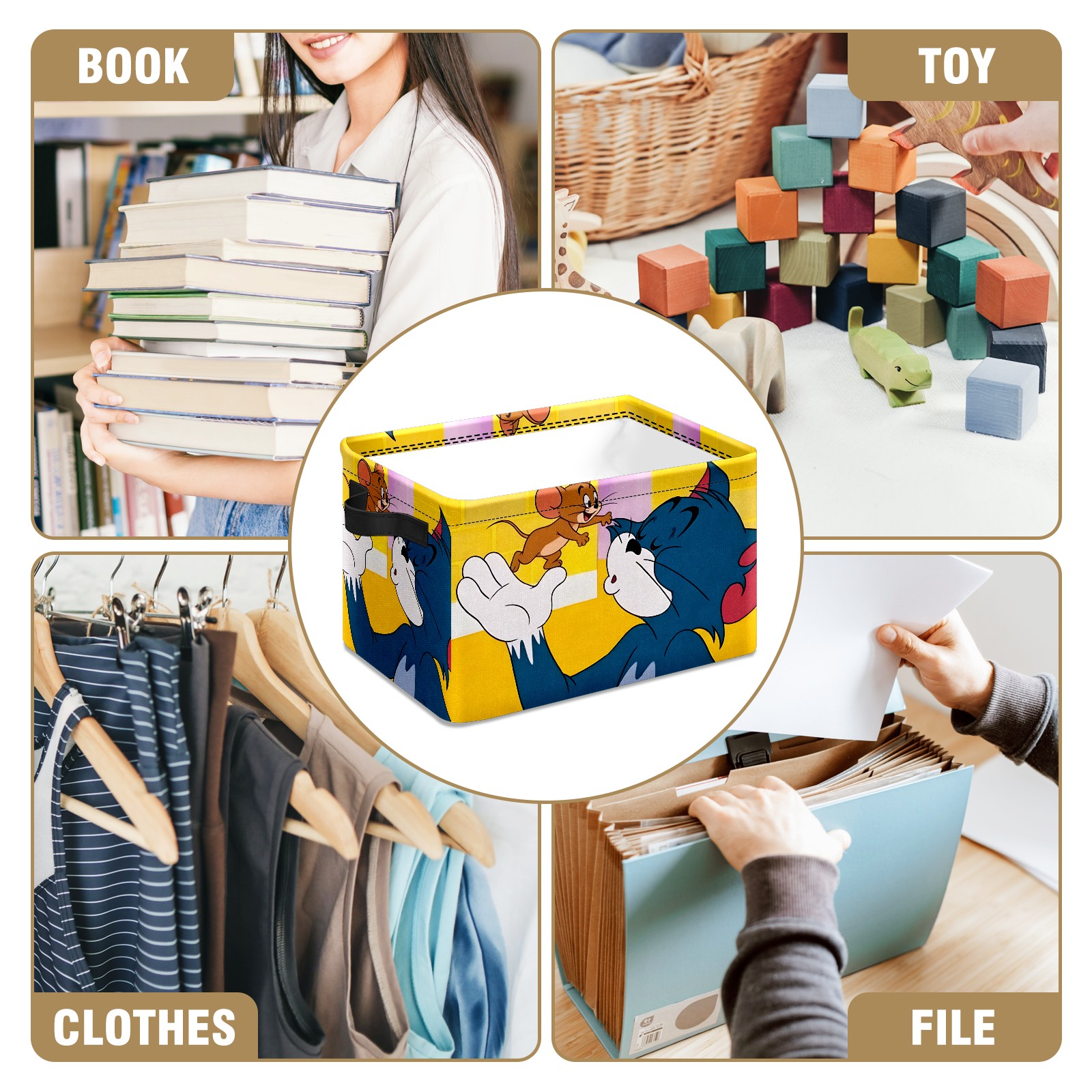 Foldable and Stackable Fabric Storage Basket for Home Organization with Handles, Decorative Closet Bins for Shelves and Laundry Storage( 创作经典IP图1111)