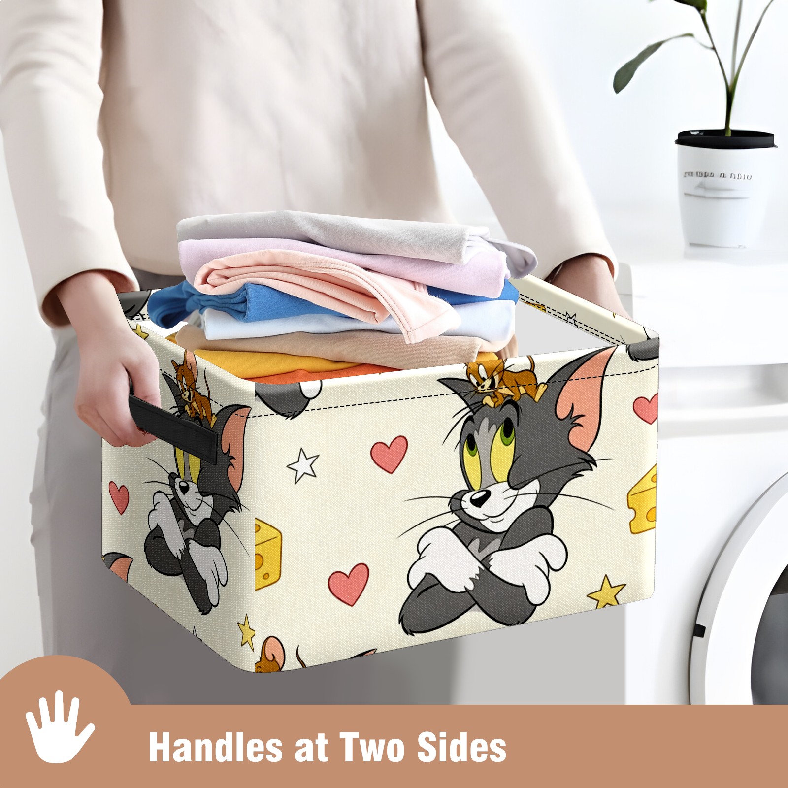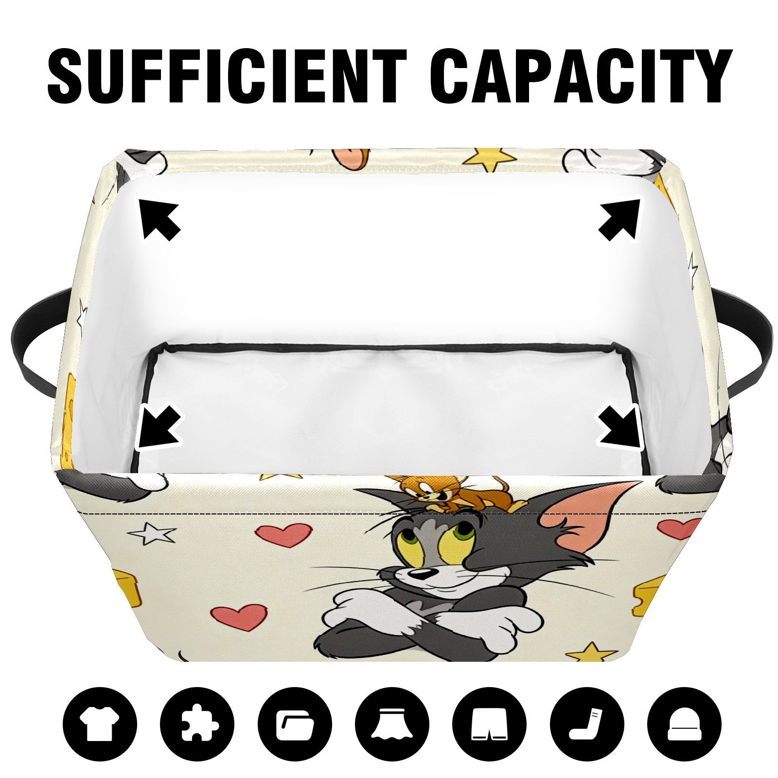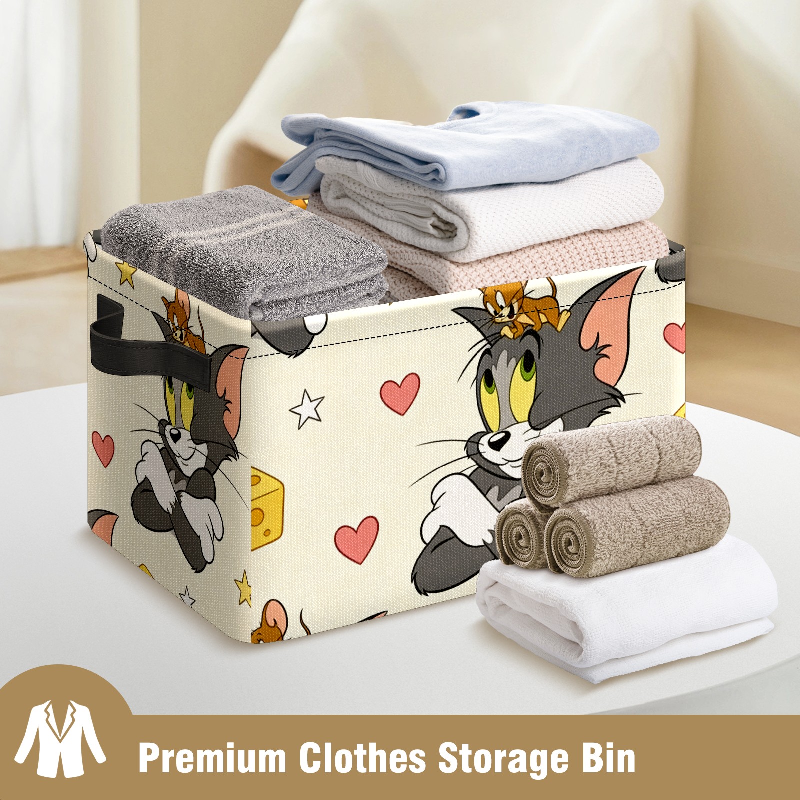 Foldable and Stackable Fabric Storage Basket for Home Organization with Handles, Decorative Closet Bins for Shelves and Laundry Storage( 创作经典IP图 (198))