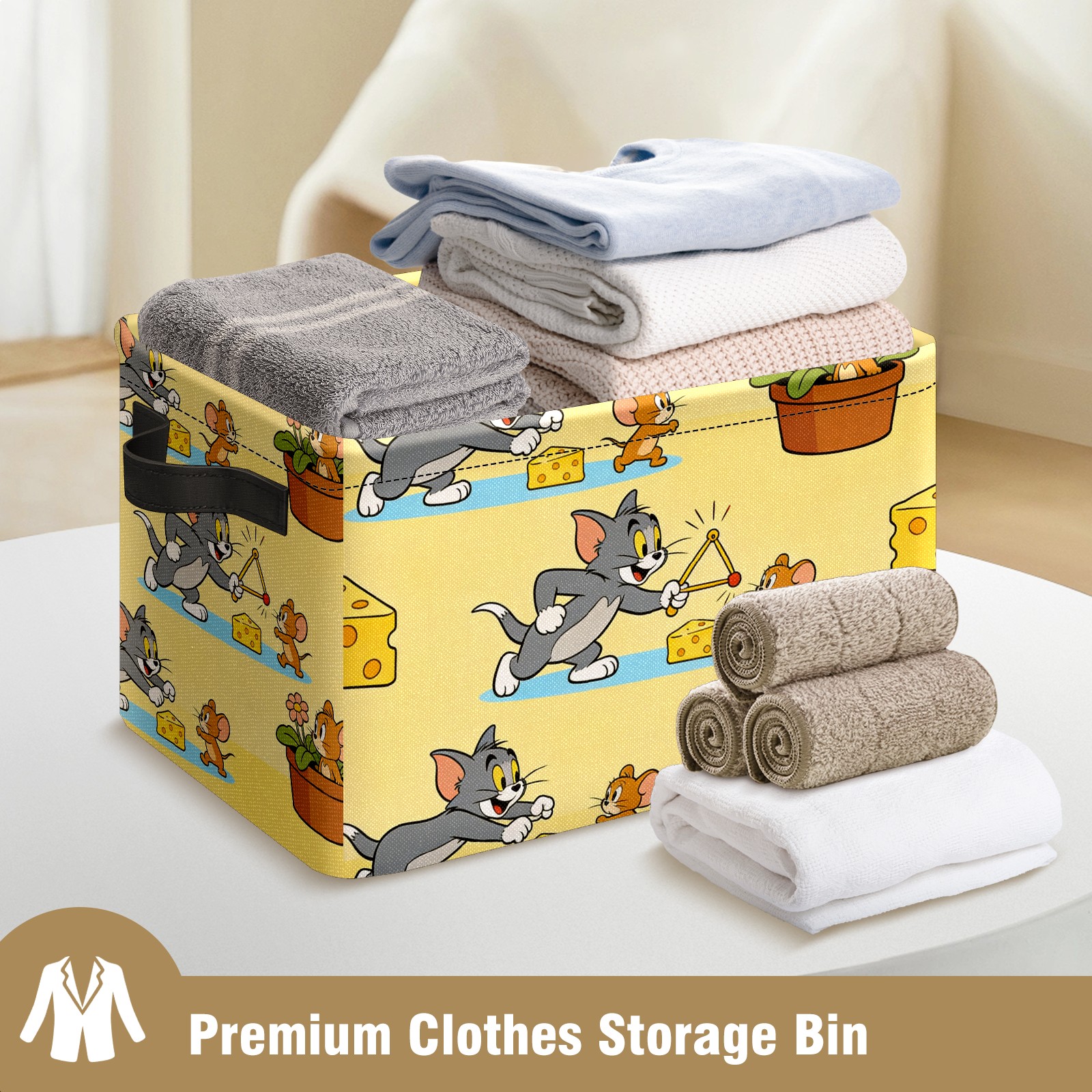 Foldable and Stackable Fabric Storage Basket for Home Organization with Handles, Decorative Closet Bins for Shelves and Laundry Storage( 创作经典IP图 (150))