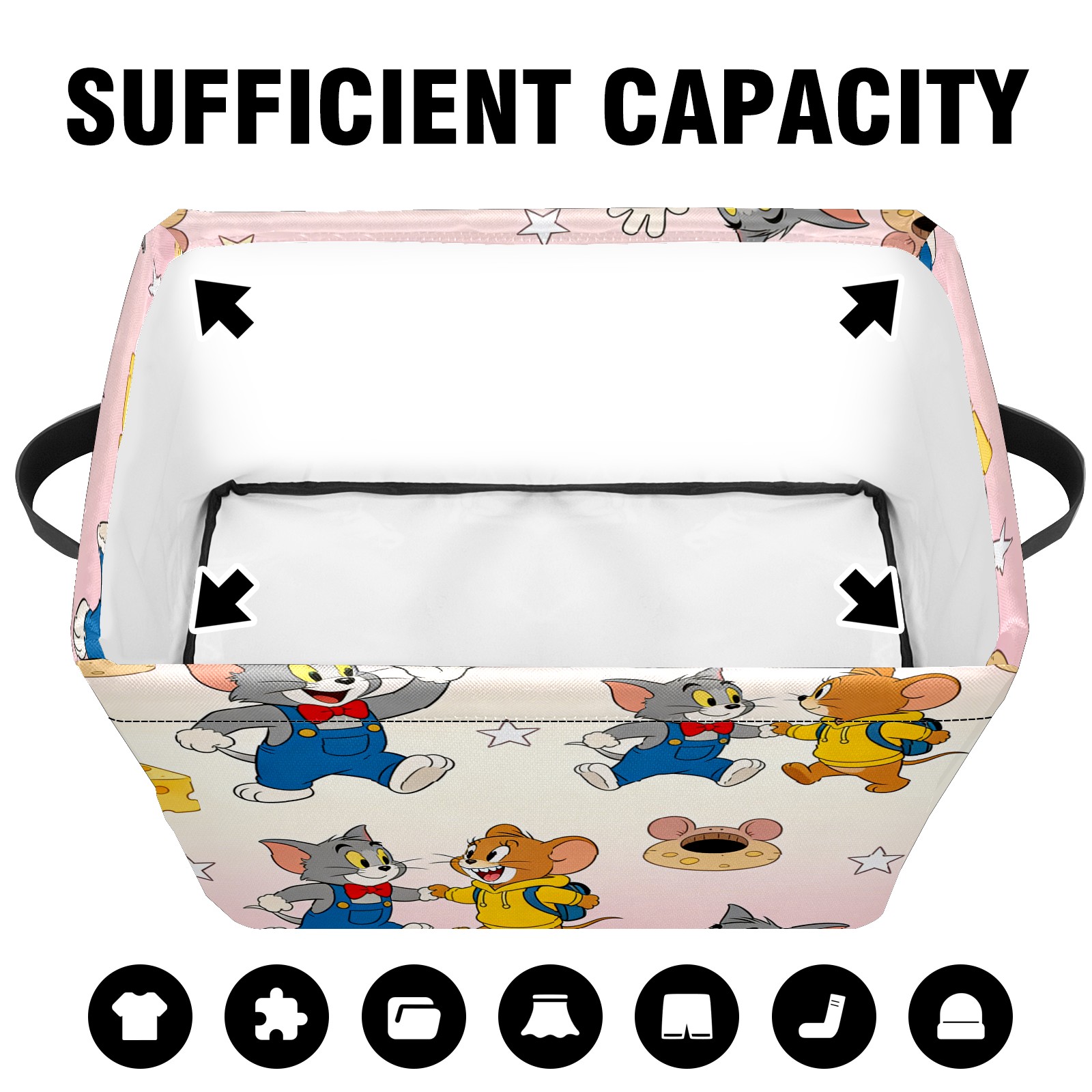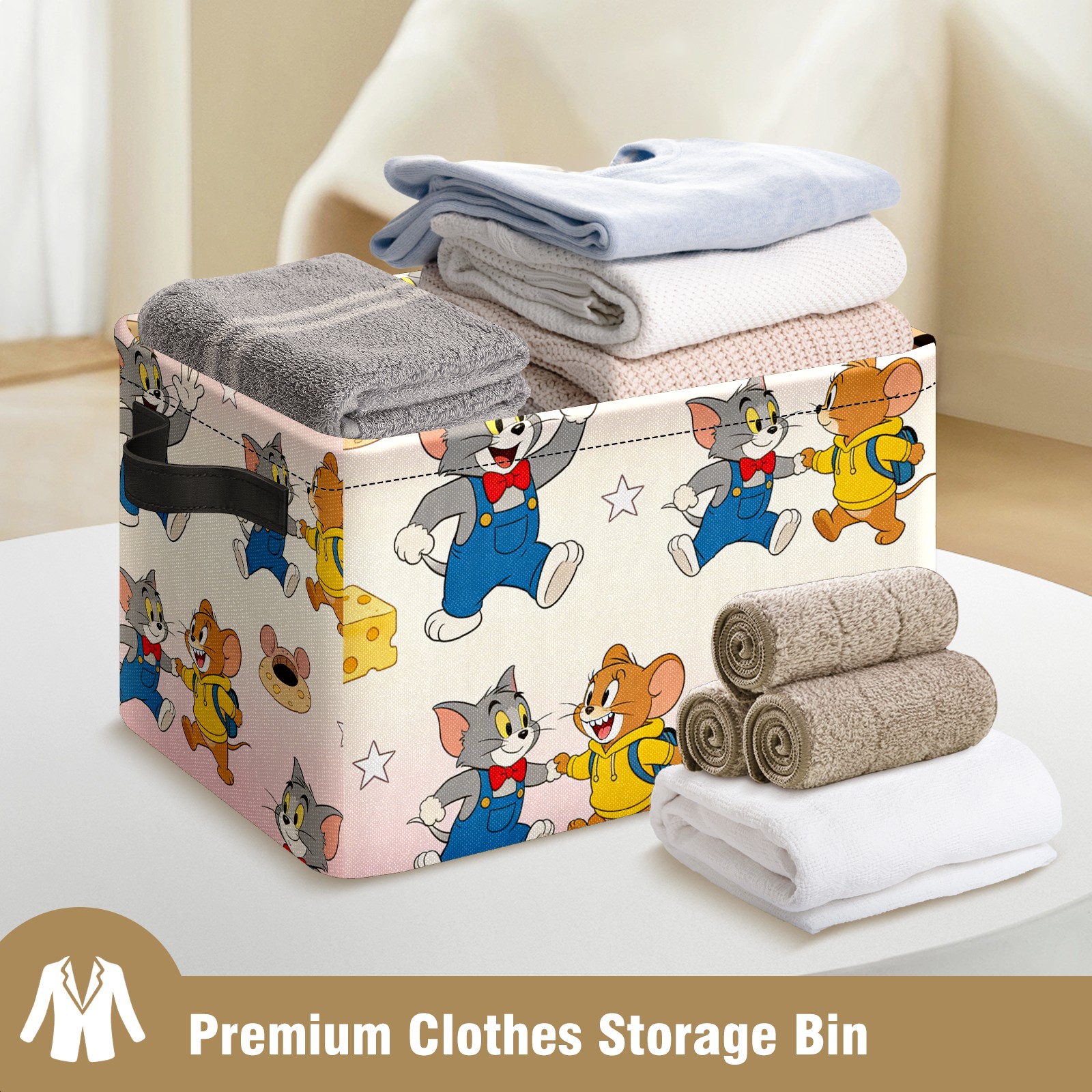 Foldable and Stackable Fabric Storage Basket for Home Organization with Handles, Decorative Closet Bins for Shelves and Laundry Storage( 创作经典IP图 (153))