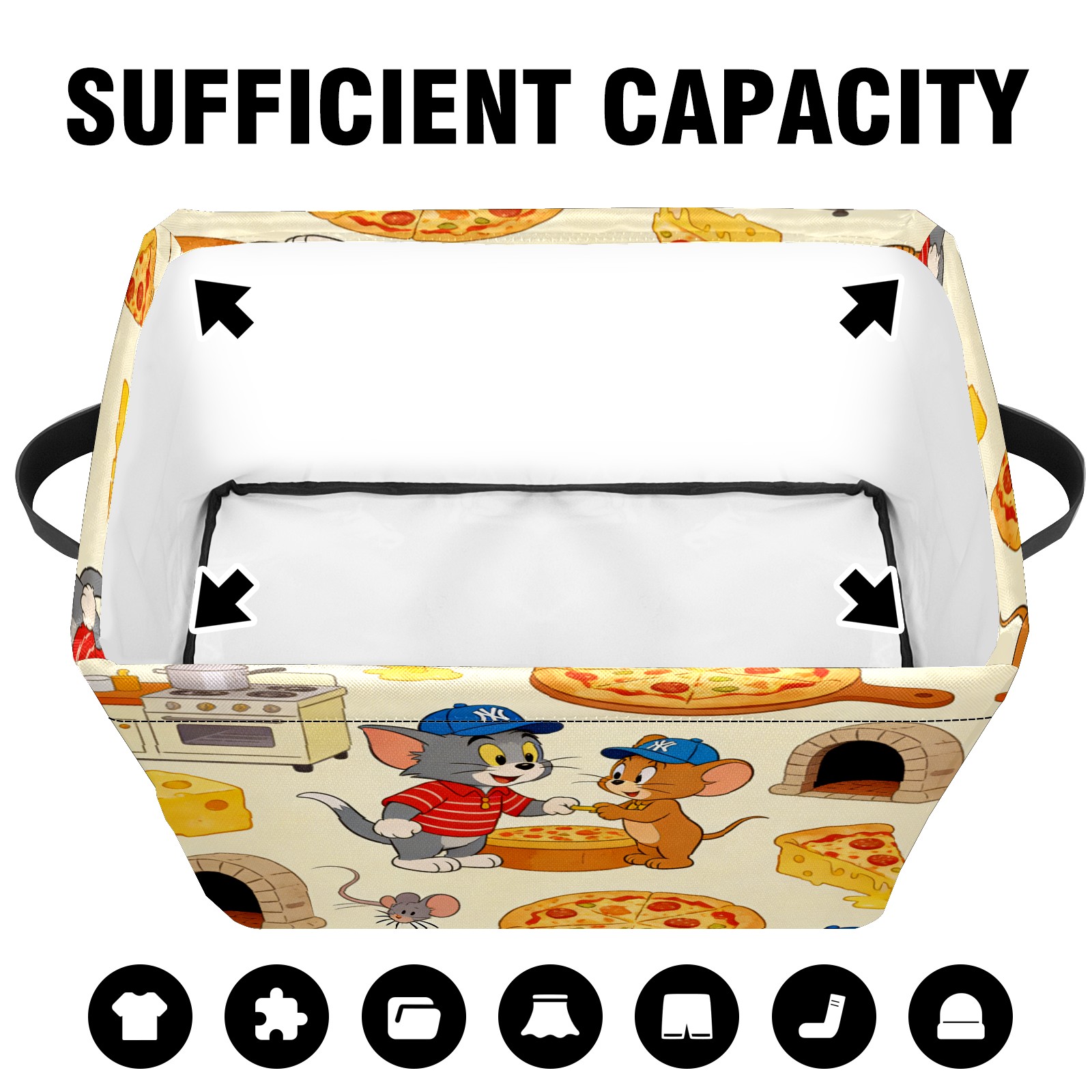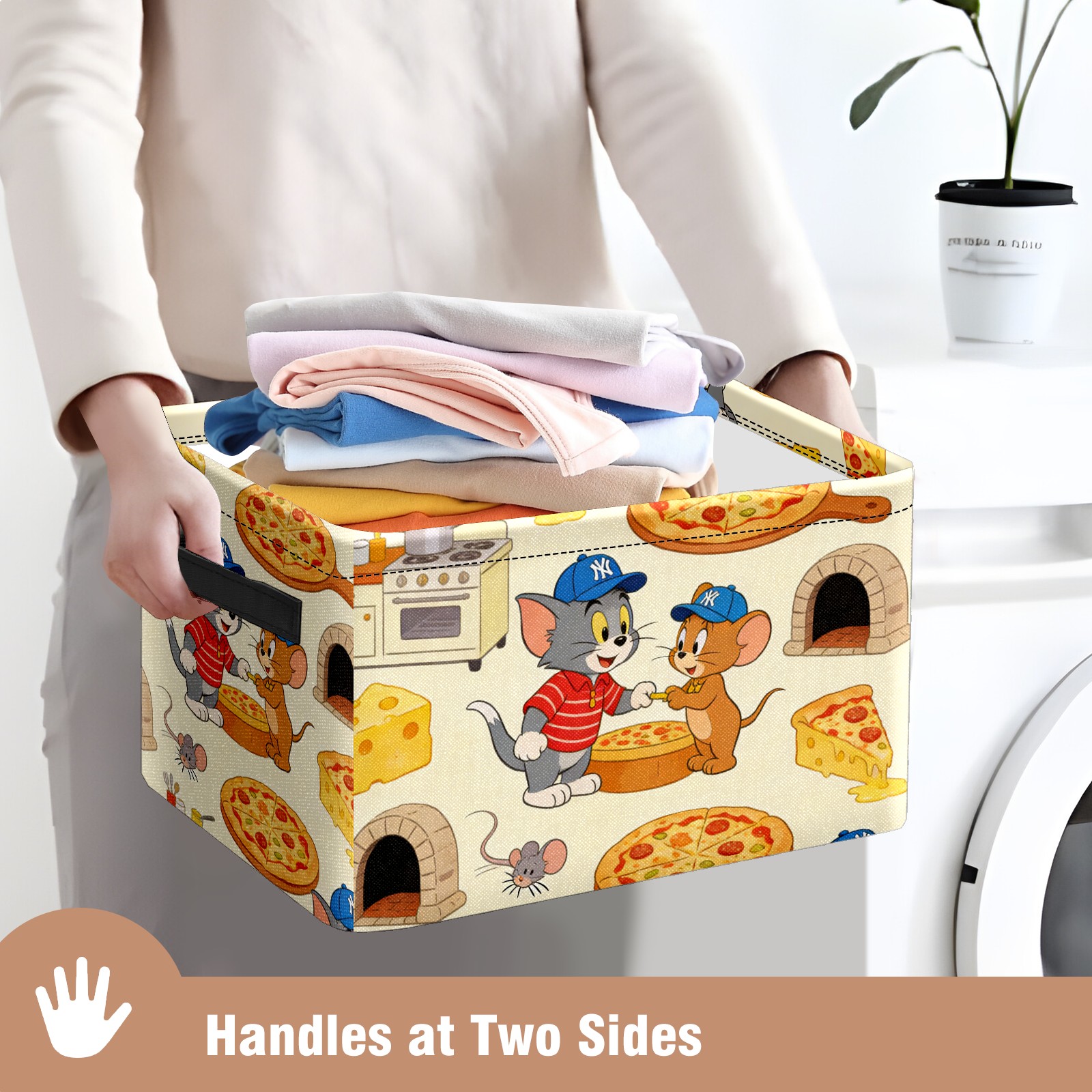 Foldable and Stackable Fabric Storage Basket for Home Organization with Handles, Decorative Closet Bins for Shelves and Laundry Storage( 创作经典IP图 (121))