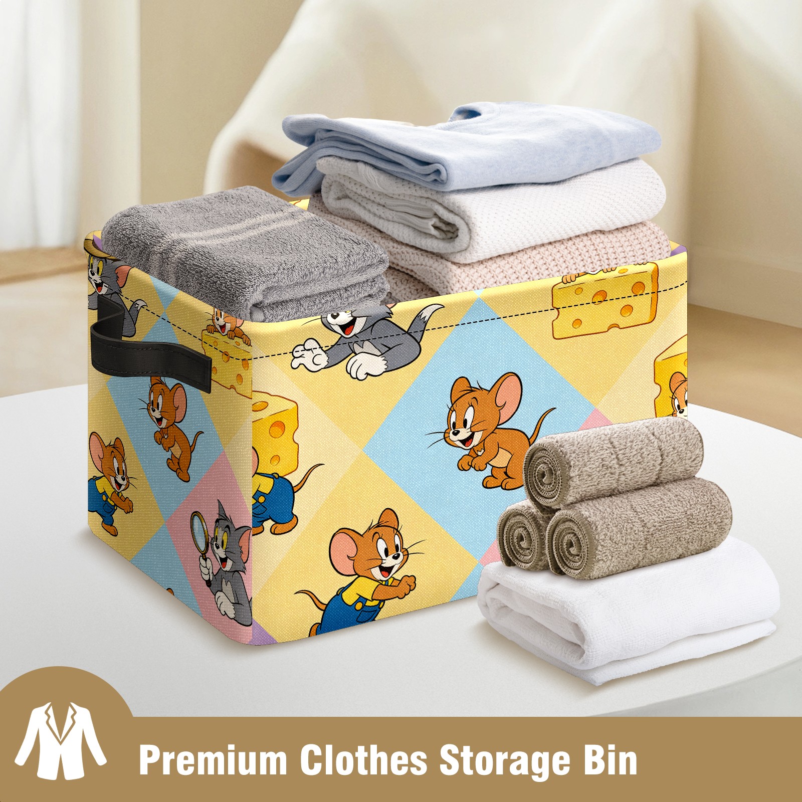 Foldable and Stackable Fabric Storage Basket for Home Organization with Handles, Decorative Closet Bins for Shelves and Laundry Storage( 创作经典IP图 (99))