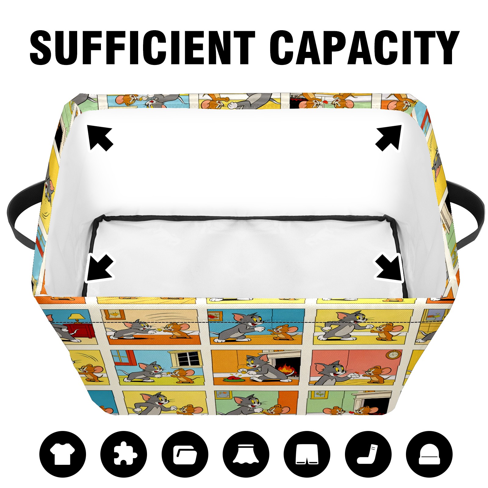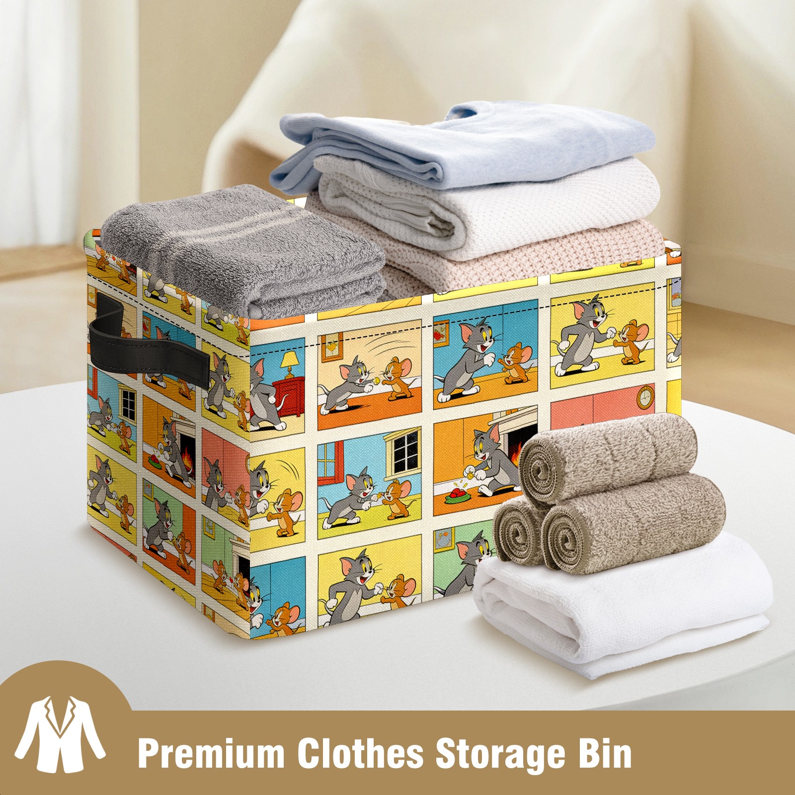 Foldable and Stackable Fabric Storage Basket for Home Organization with Handles, Decorative Closet Bins for Shelves and Laundry Storage( 创作经典IP图 (89))