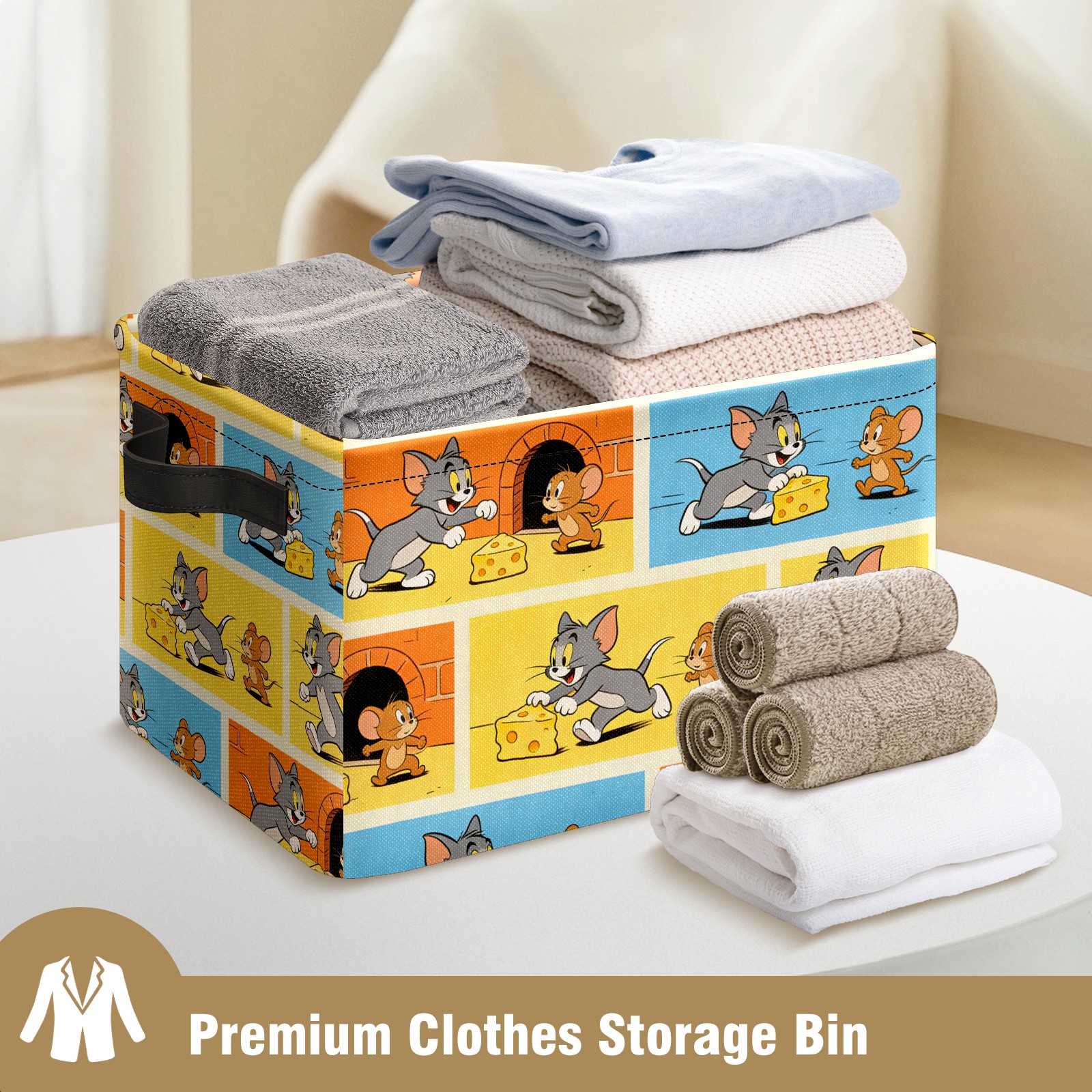 Foldable and Stackable Fabric Storage Basket for Home Organization with Handles, Decorative Closet Bins for Shelves and Laundry Storage( 创作经典IP图 (42))