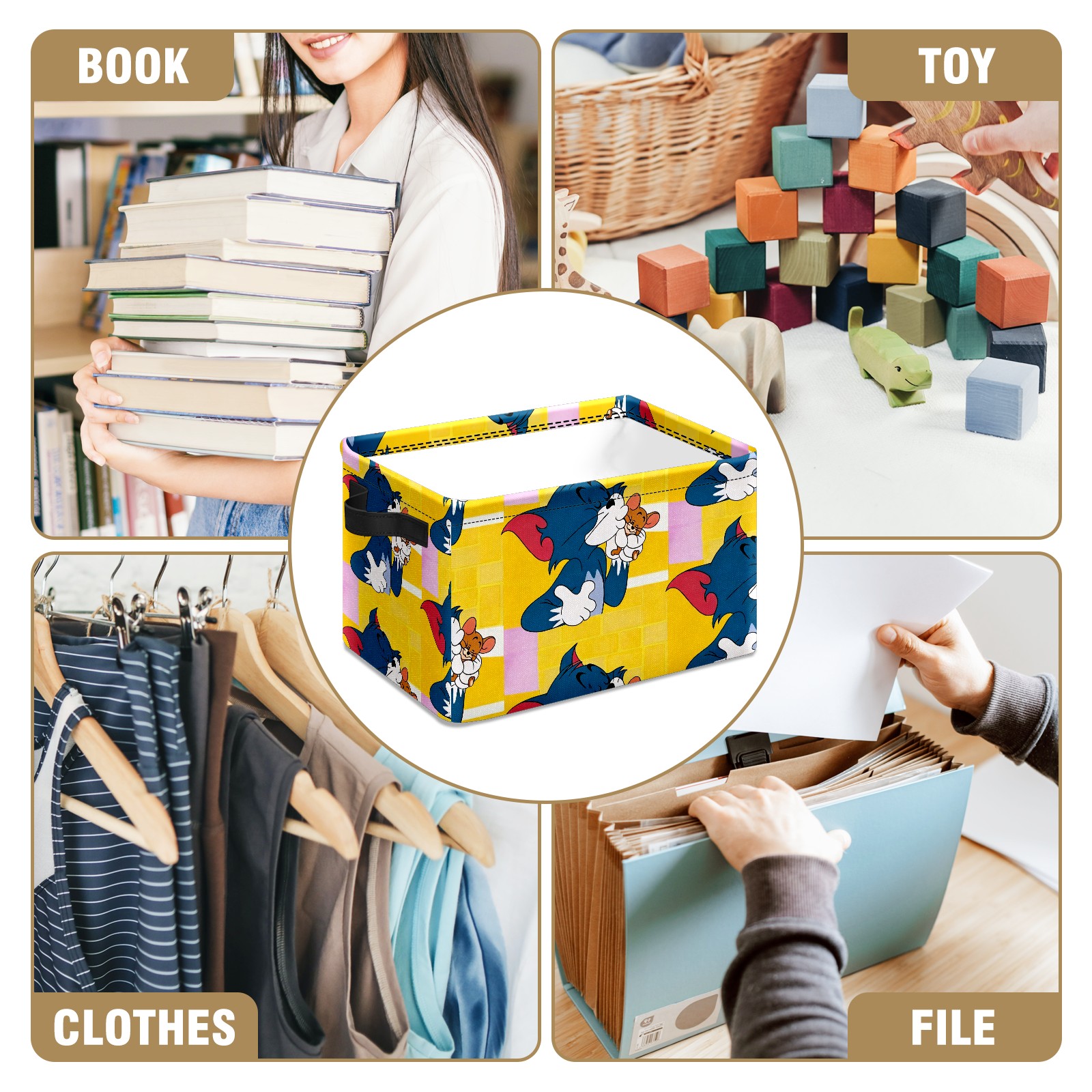 Foldable and Stackable Fabric Storage Basket for Home Organization with Handles, Decorative Closet Bins for Shelves and Laundry Storage( 创作经典IP图 (23))