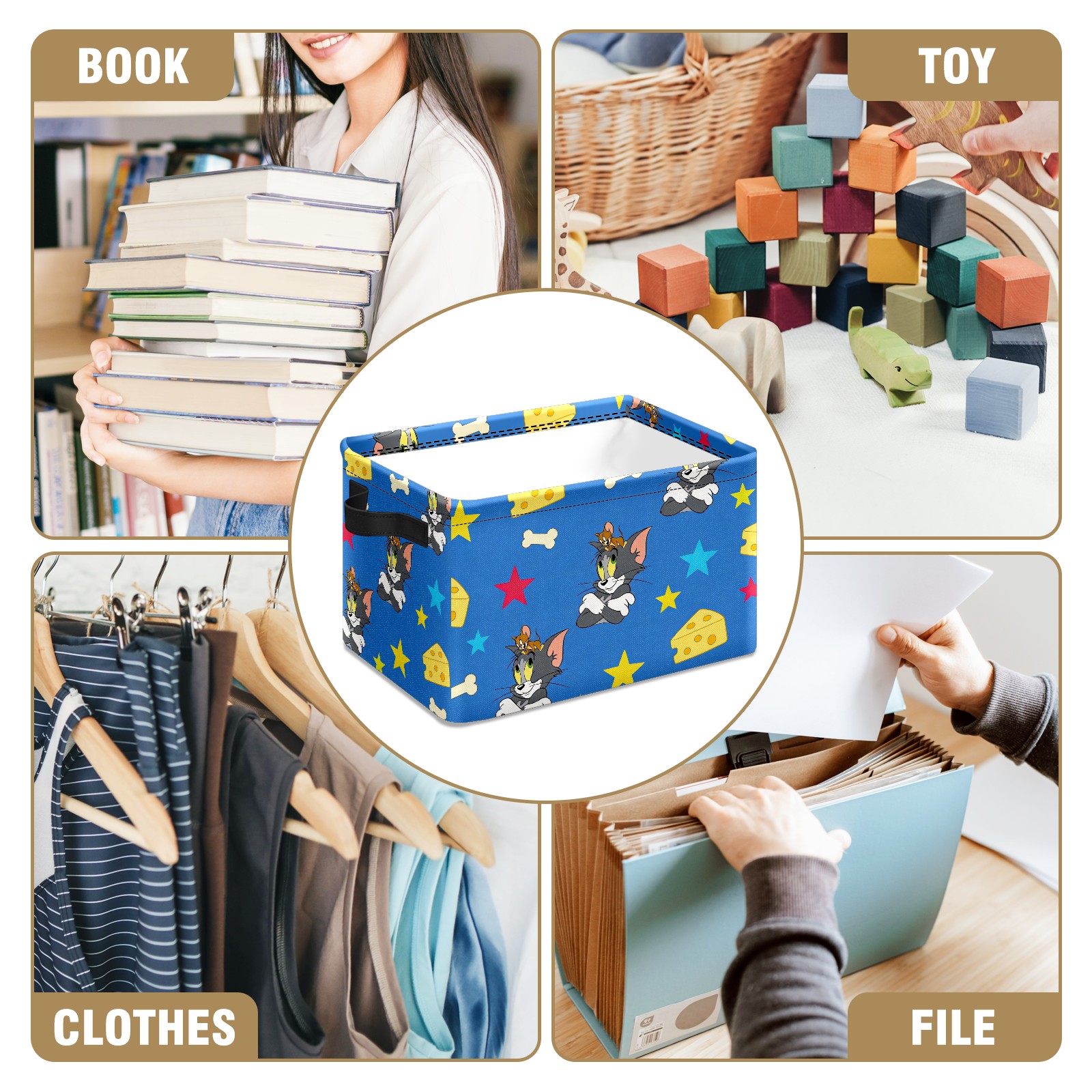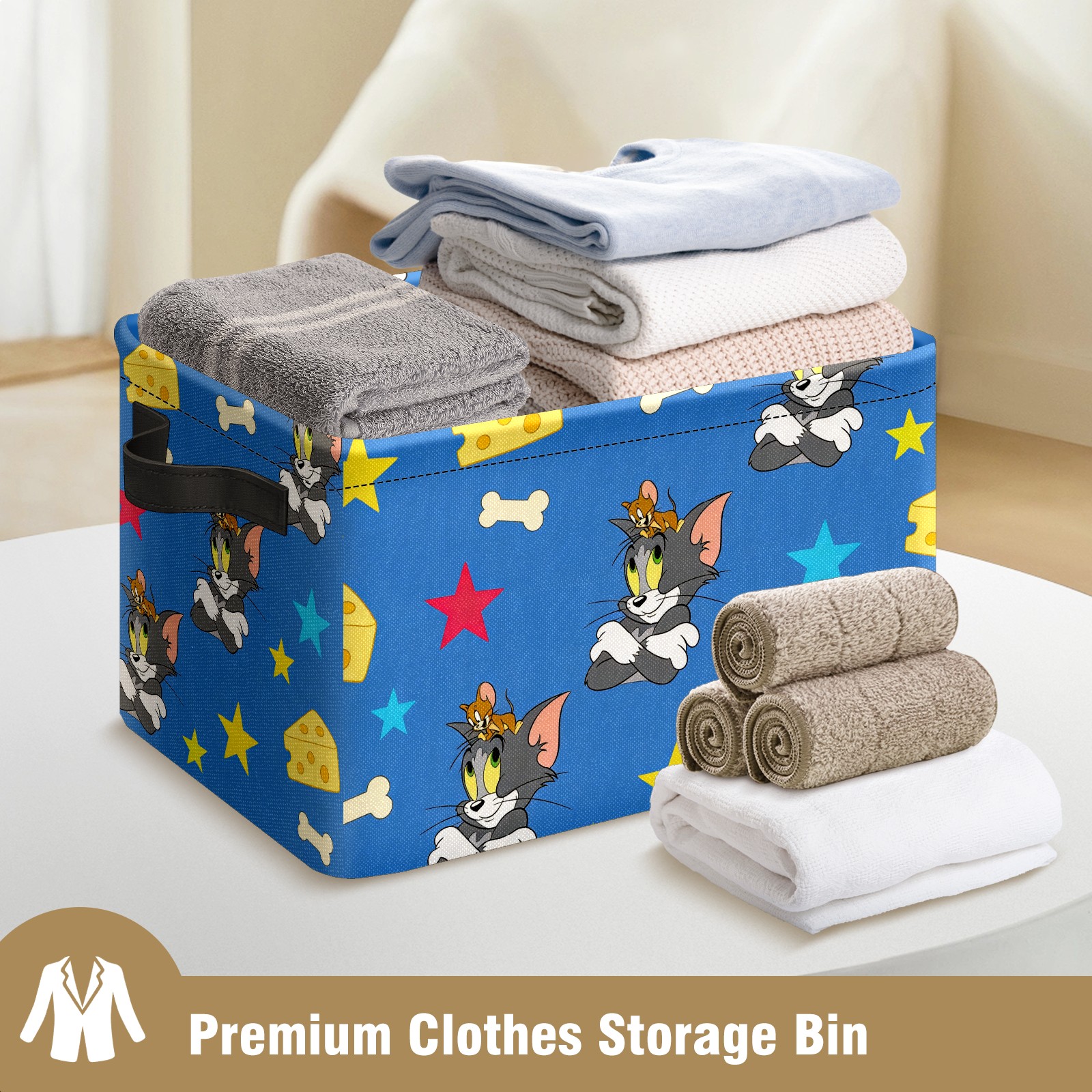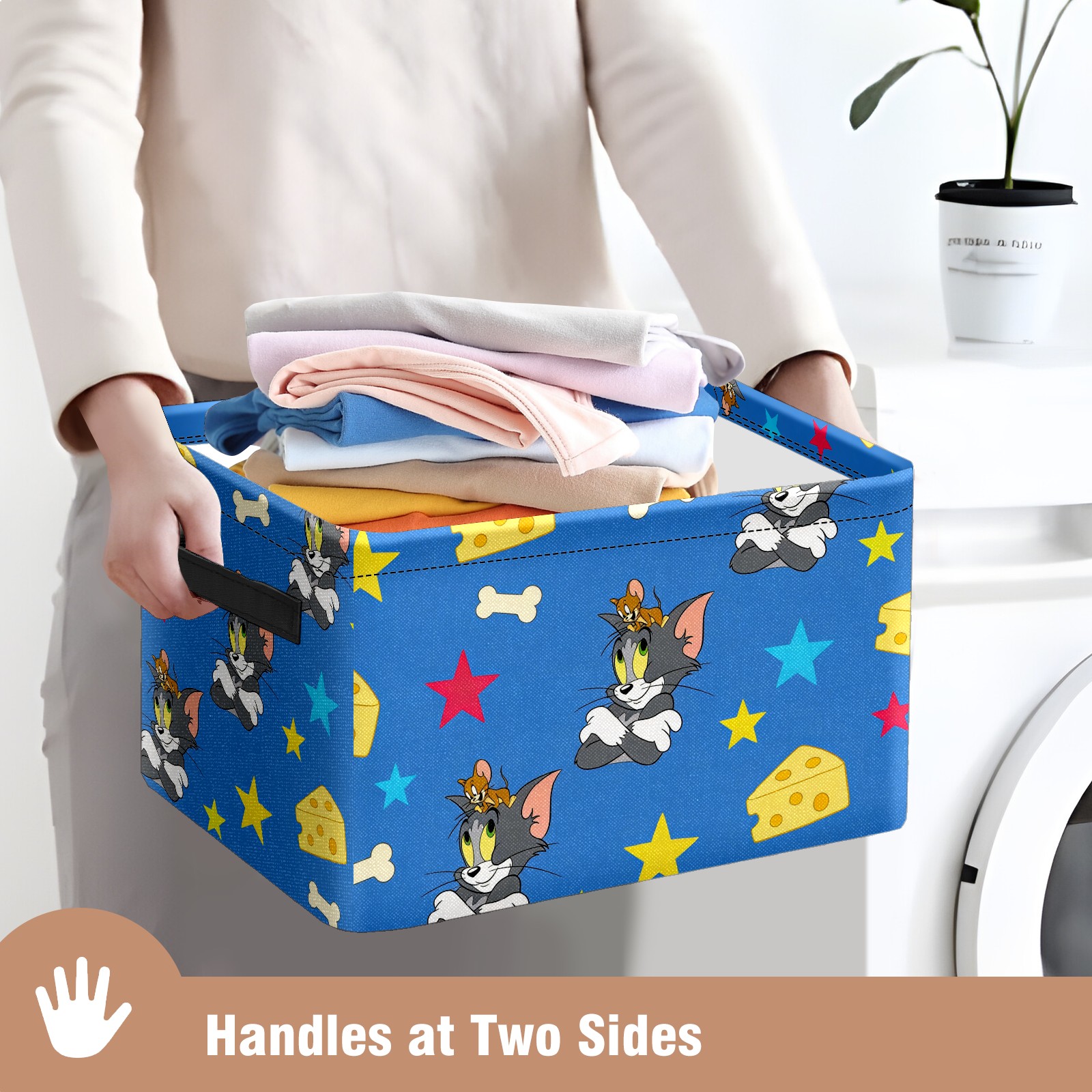 Foldable and Stackable Fabric Storage Basket for Home Organization with Handles, Decorative Closet Bins for Shelves and Laundry Storage( 创作经典IP图 (17))