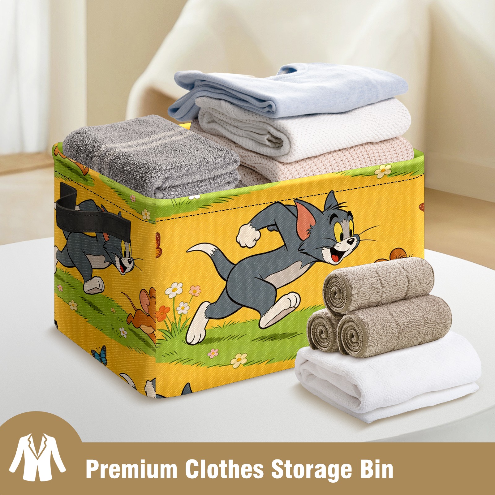 Foldable and Stackable Fabric Storage Basket for Home Organization with Handles, Decorative Closet Bins for Shelves and Laundry Storage( 创作经典IP图 (4))
