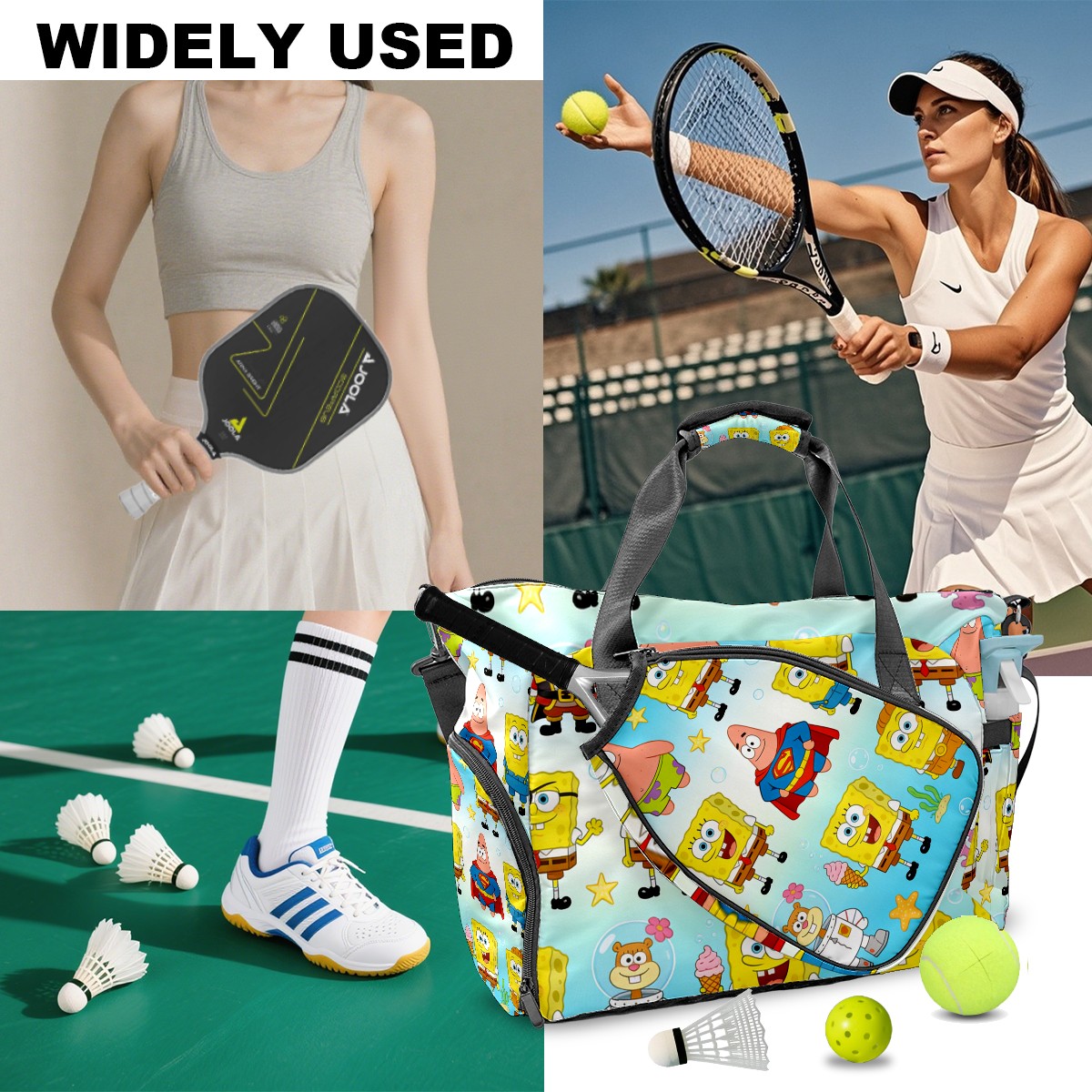 Pickleball Tote Bag Carryall for Paddles Balls and Accessories, Portable Lightweight Gear Bag for Players(创作经典IP图 (33))