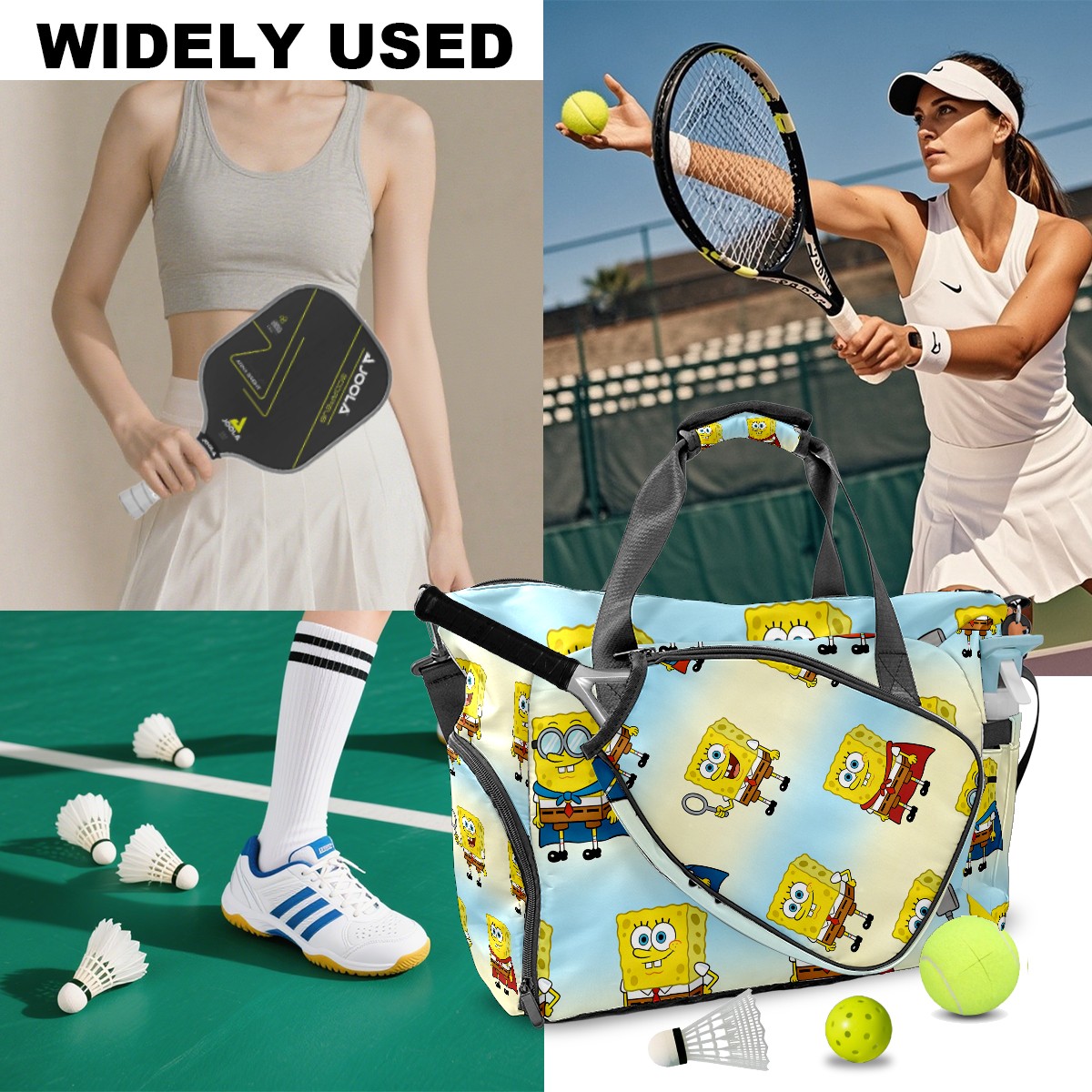 Pickleball Tote Bag Carryall for Paddles Balls and Accessories, Portable Lightweight Gear Bag for Players(创作经典IP图 (27))