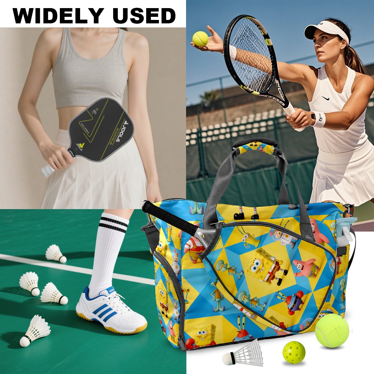 Pickleball Tote Bag Carryall for Paddles Balls and Accessories, Portable Lightweight Gear Bag for Players(创作经典IP图 (22))