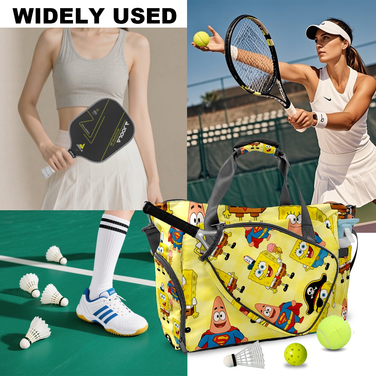 Pickleball Tote Bag Carryall for Paddles Balls and Accessories, Portable Lightweight Gear Bag for Players(创作经典IP图 (8))