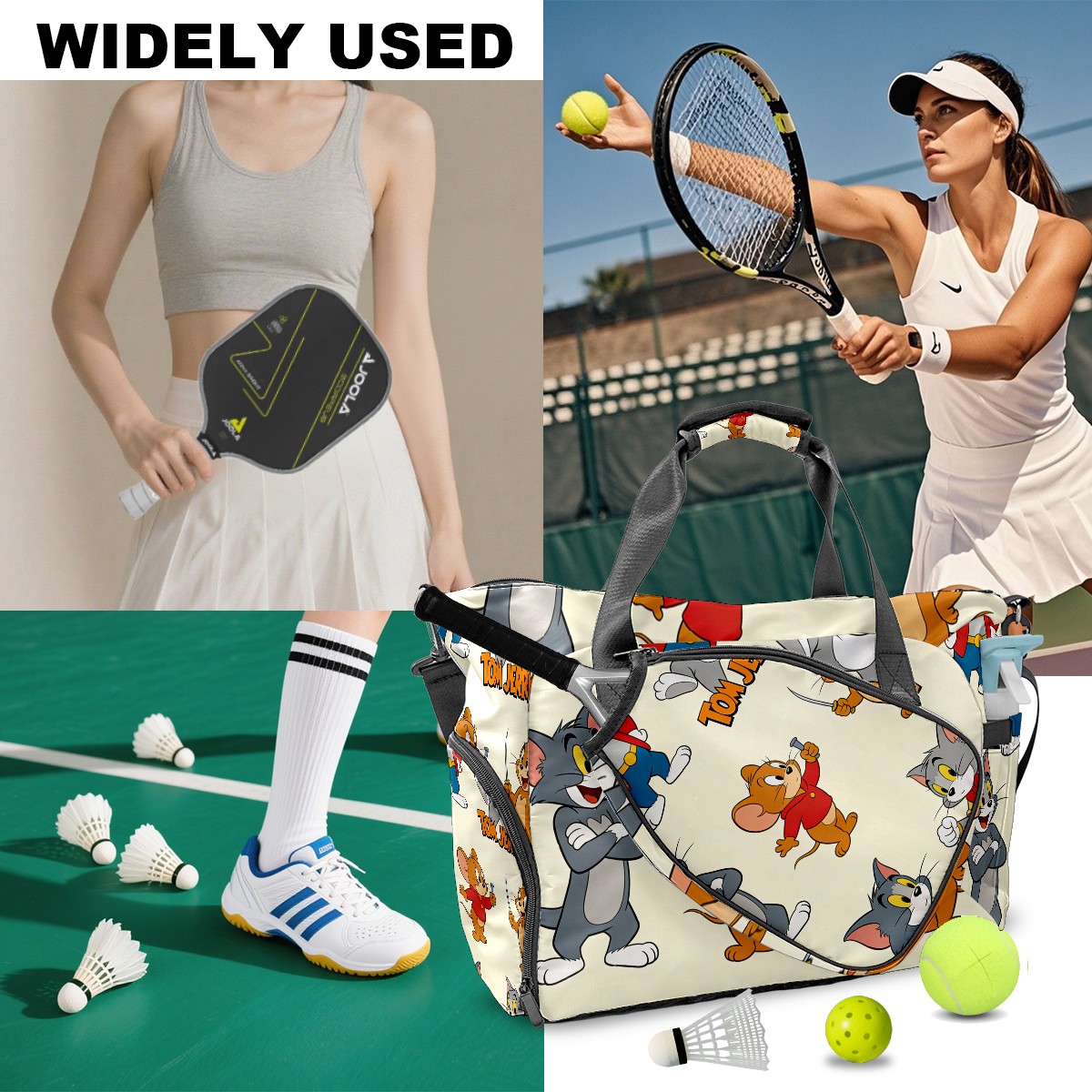Pickleball Tote Bag Carryall for Paddles Balls and Accessories, Portable Lightweight Gear Bag for Players(创作经典IP图 (157))