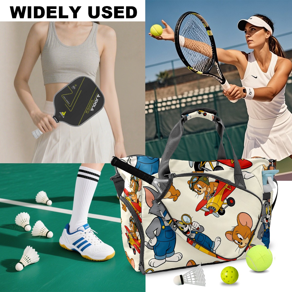 Pickleball Tote Bag Carryall for Paddles Balls and Accessories, Portable Lightweight Gear Bag for Players(创作经典IP图 (151))