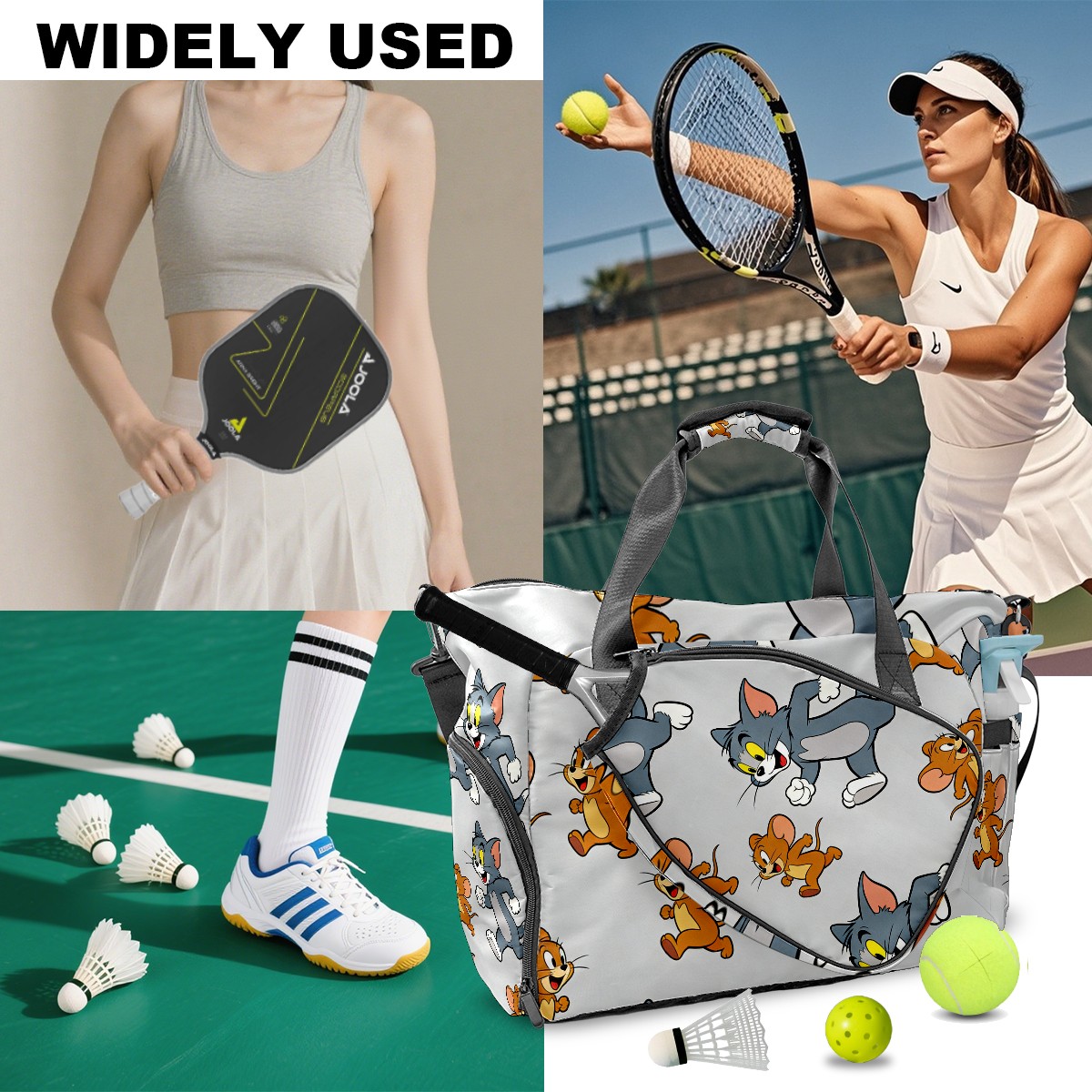 Pickleball Tote Bag Carryall for Paddles Balls and Accessories, Portable Lightweight Gear Bag for Players(创作经典IP图 (117))