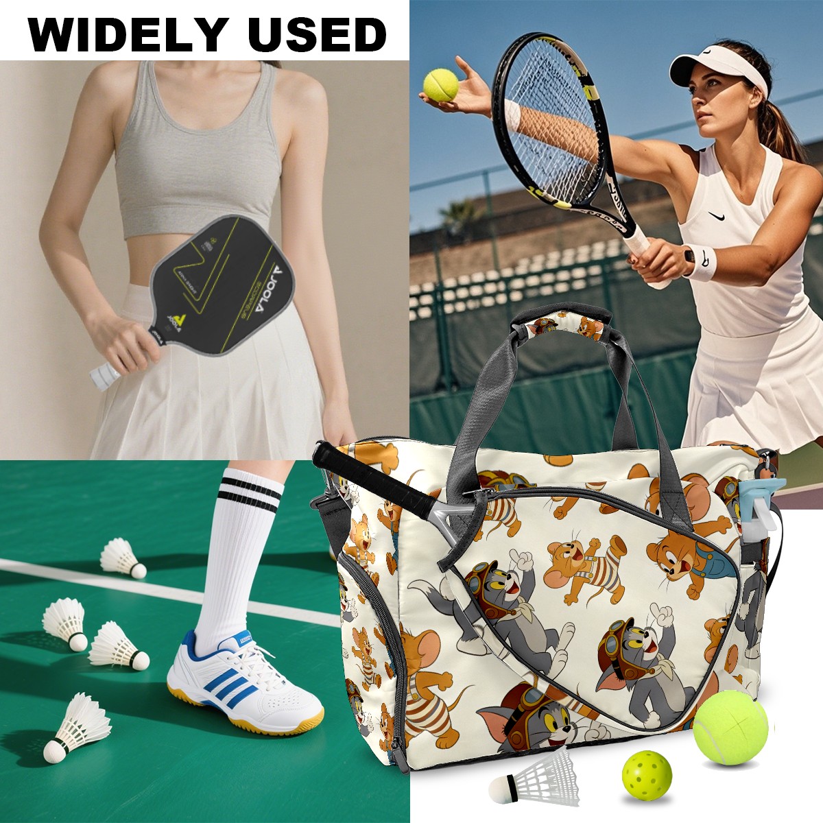Pickleball Tote Bag Carryall for Paddles Balls and Accessories, Portable Lightweight Gear Bag for Players(创作经典IP图 (126))