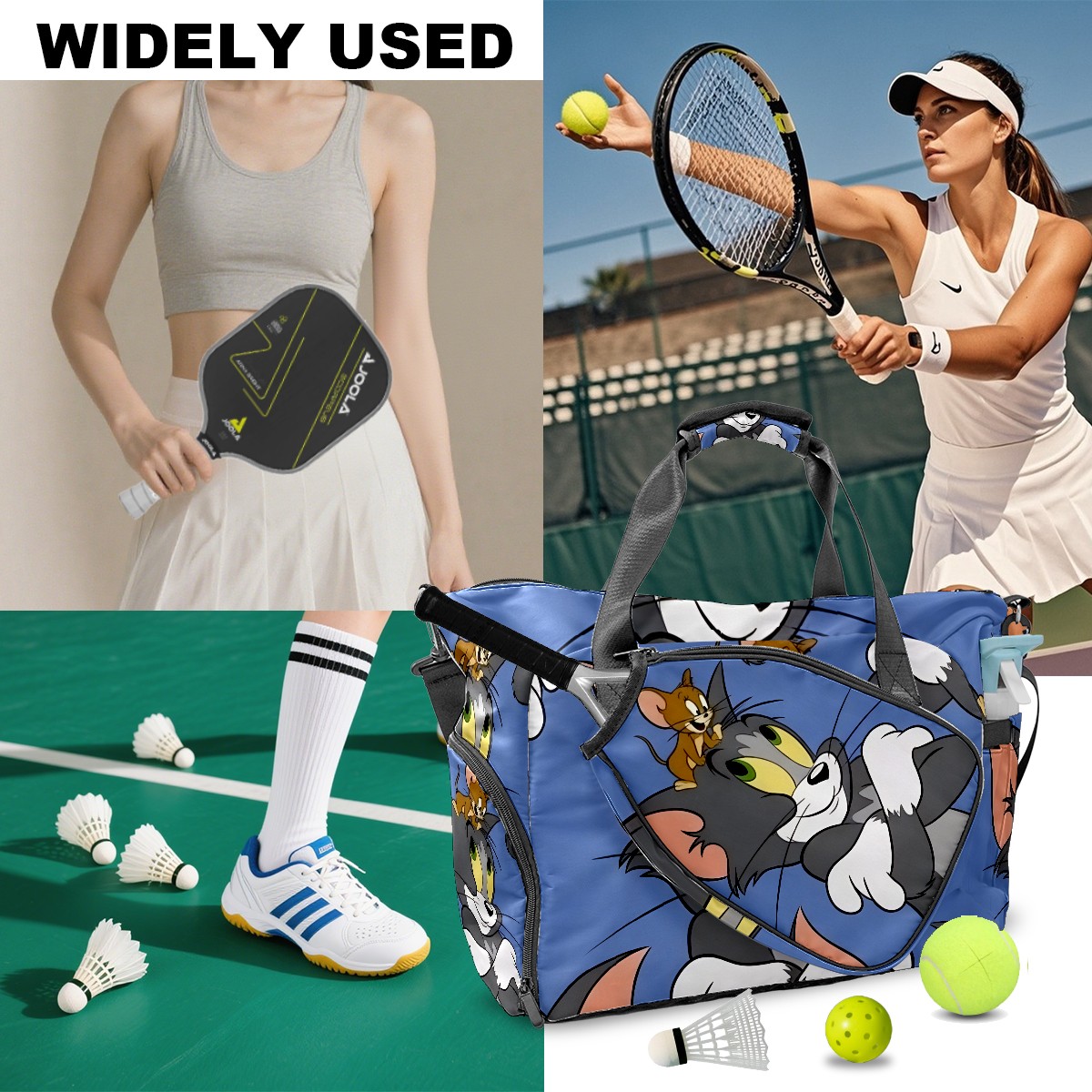 Pickleball Tote Bag Carryall for Paddles Balls and Accessories, Portable Lightweight Gear Bag for Players(创作经典IP图 (77))