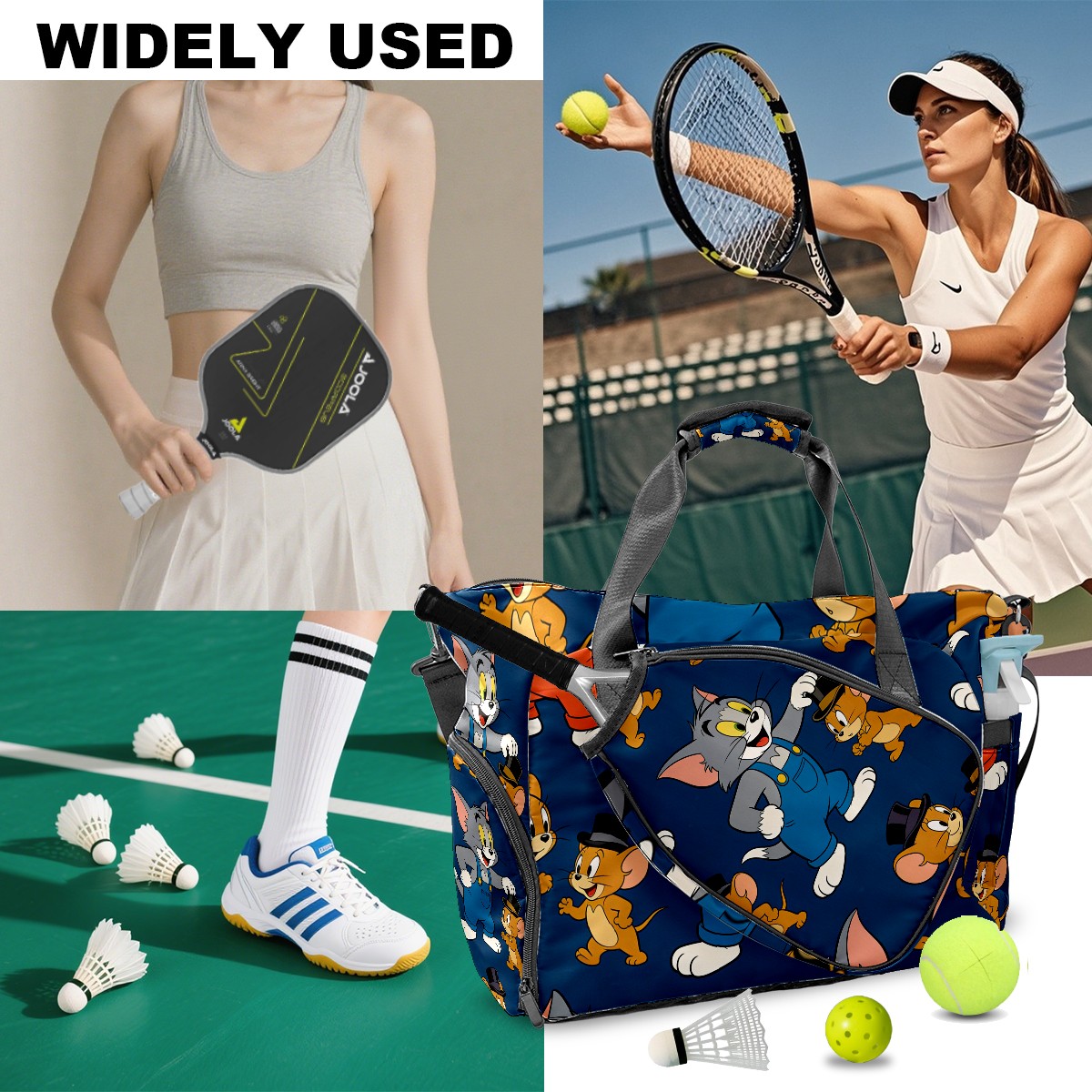 Pickleball Tote Bag Carryall for Paddles Balls and Accessories, Portable Lightweight Gear Bag for Players(创作经典IP图 (32))