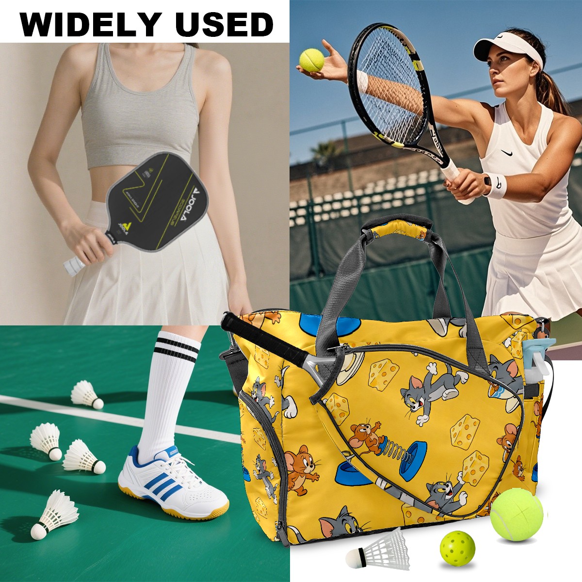 Pickleball Tote Bag Carryall for Paddles Balls and Accessories, Portable Lightweight Gear Bag for Players(创作经典IP图 (73))