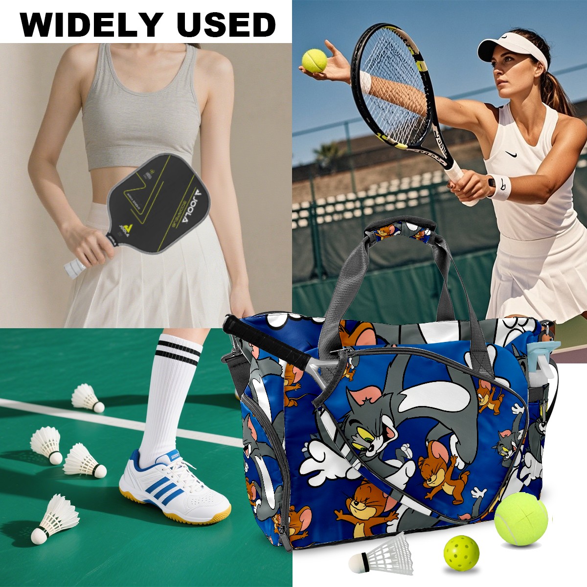 Pickleball Tote Bag Carryall for Paddles Balls and Accessories, Portable Lightweight Gear Bag for Players(创作经典IP图 (54))