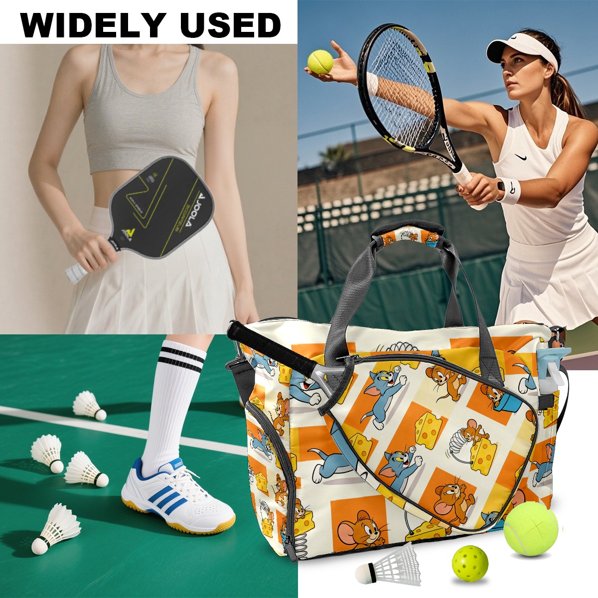 Pickleball Tote Bag Carryall for Paddles Balls and Accessories, Portable Lightweight Gear Bag for Players(创作经典IP图 (26))