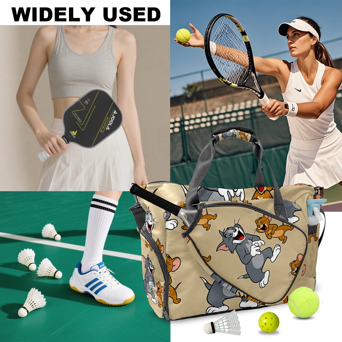 Pickleball Tote Bag Carryall for Paddles Balls and Accessories, Portable Lightweight Gear Bag for Players(创作经典IP图 (7))
