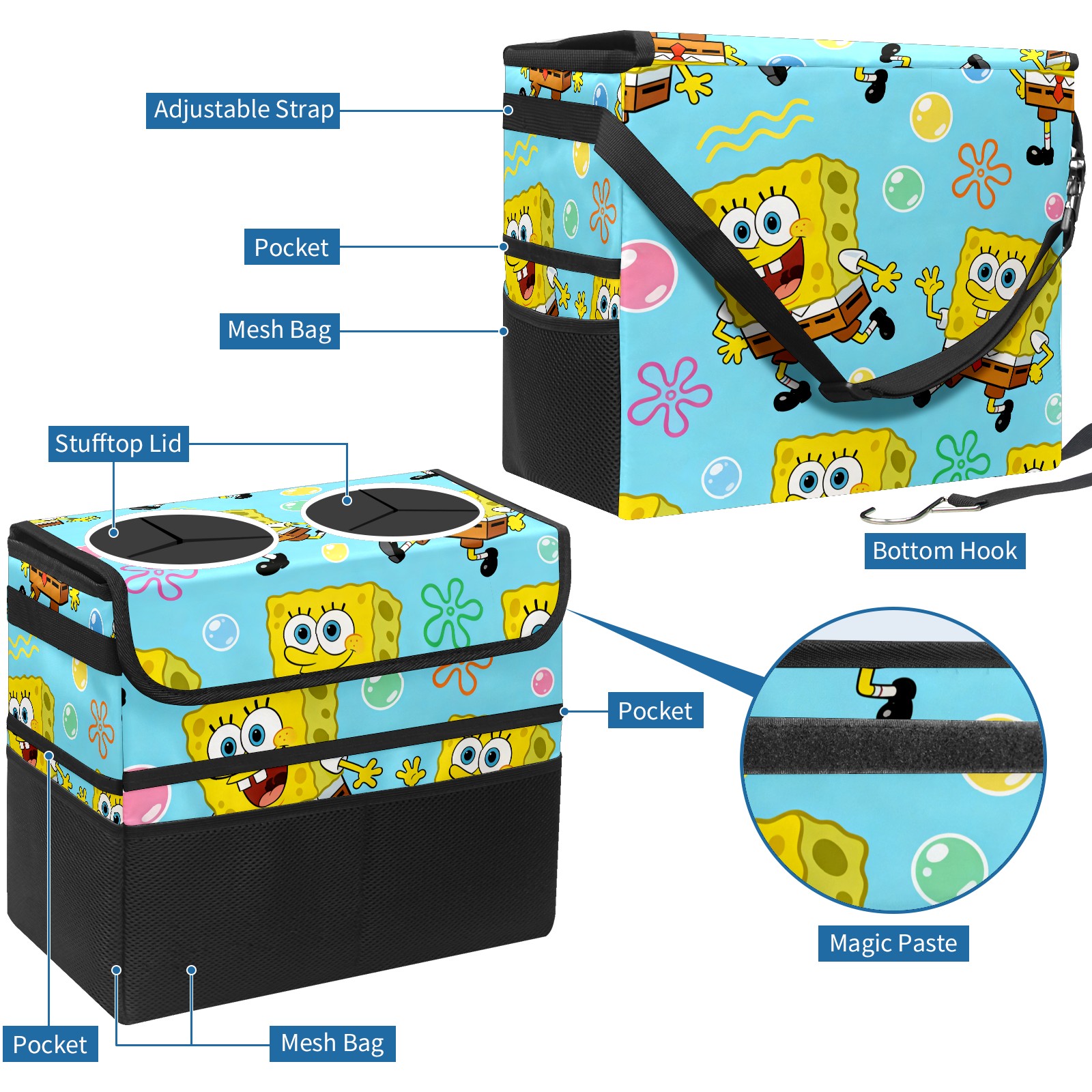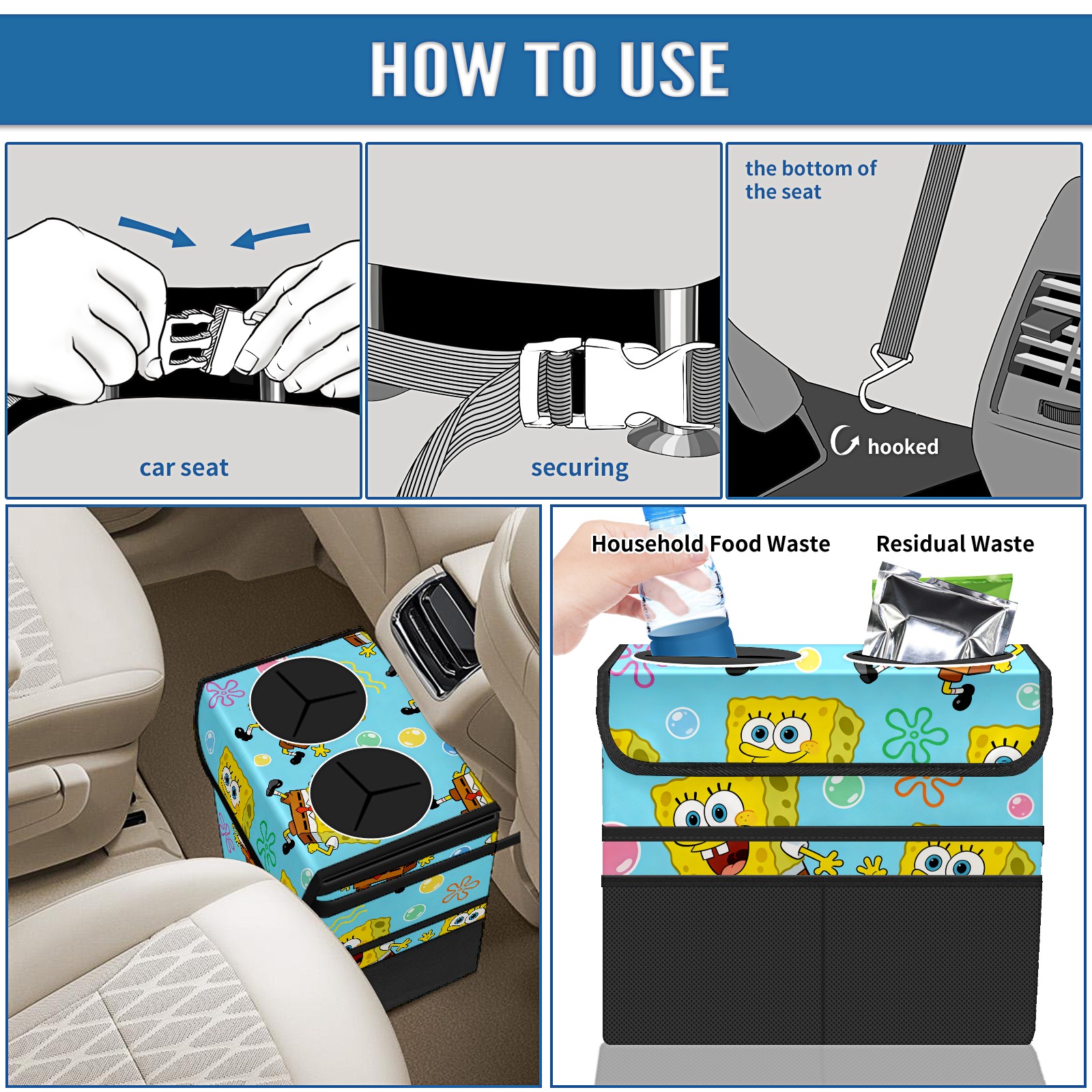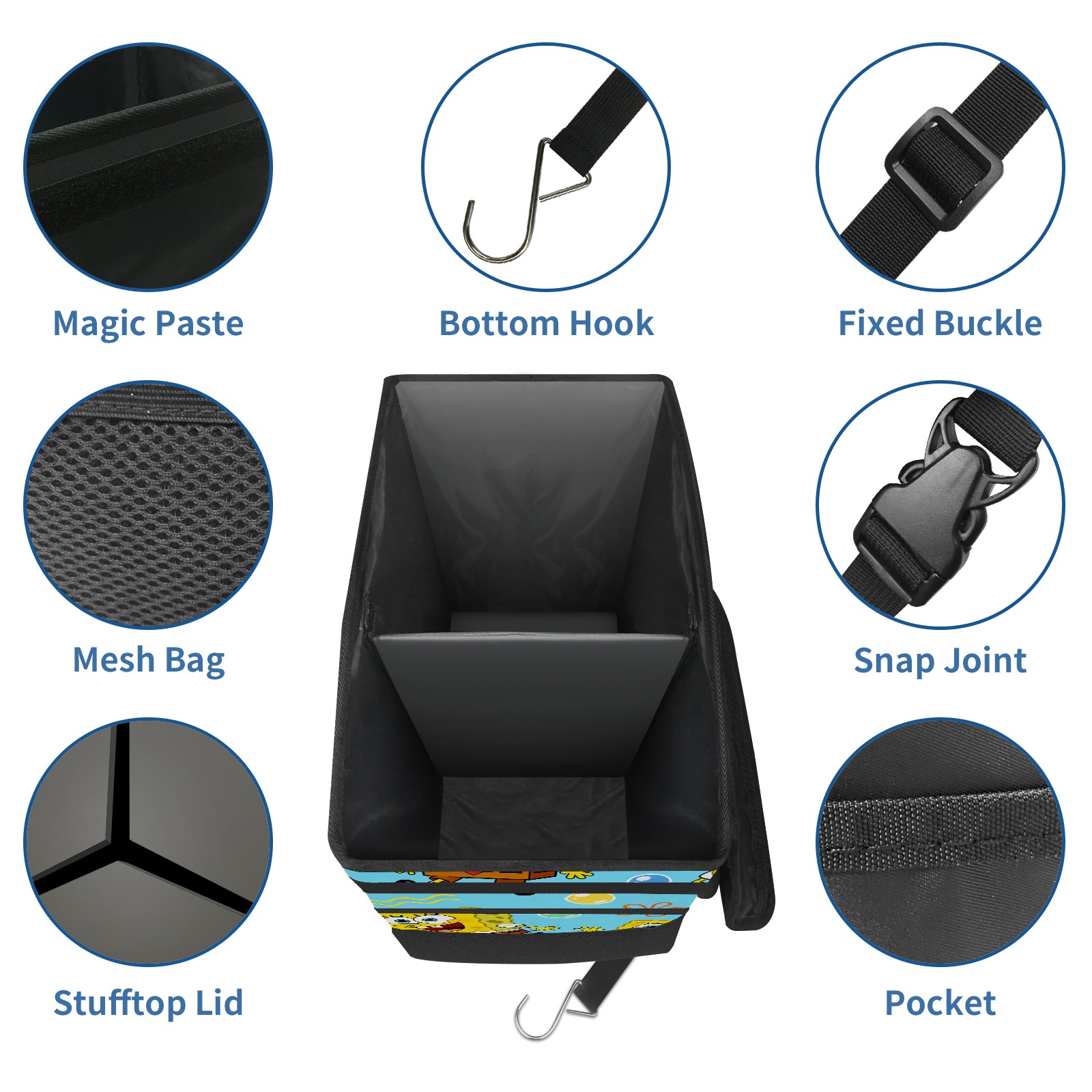 Car Trash Can with Lid, Portable Hanging Automotive Garbage Bin for Vehicles, Leakproof Waste Bag Container for SUV Truck Van Interior Auto Travel Road Trips(创作经典IP图 (58))