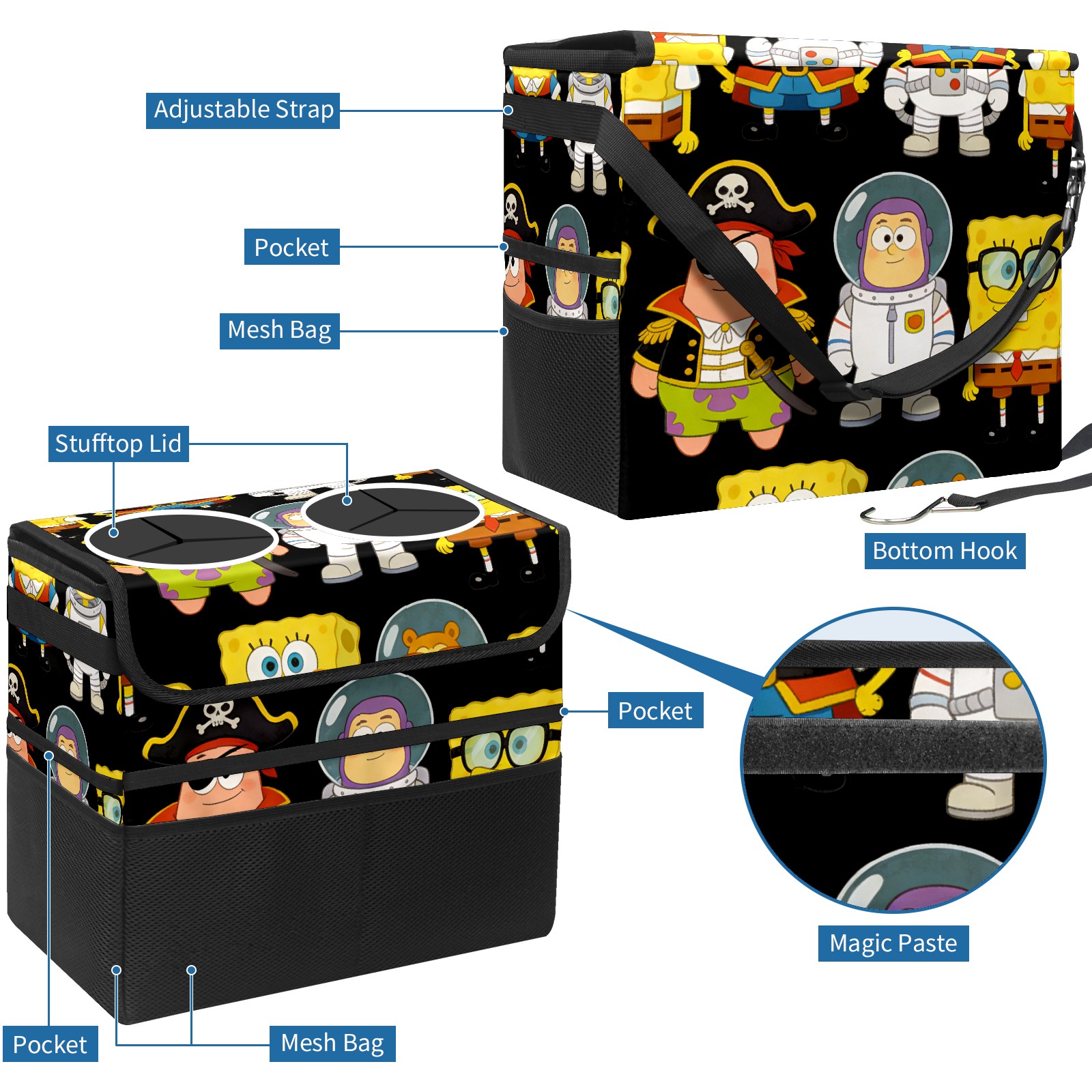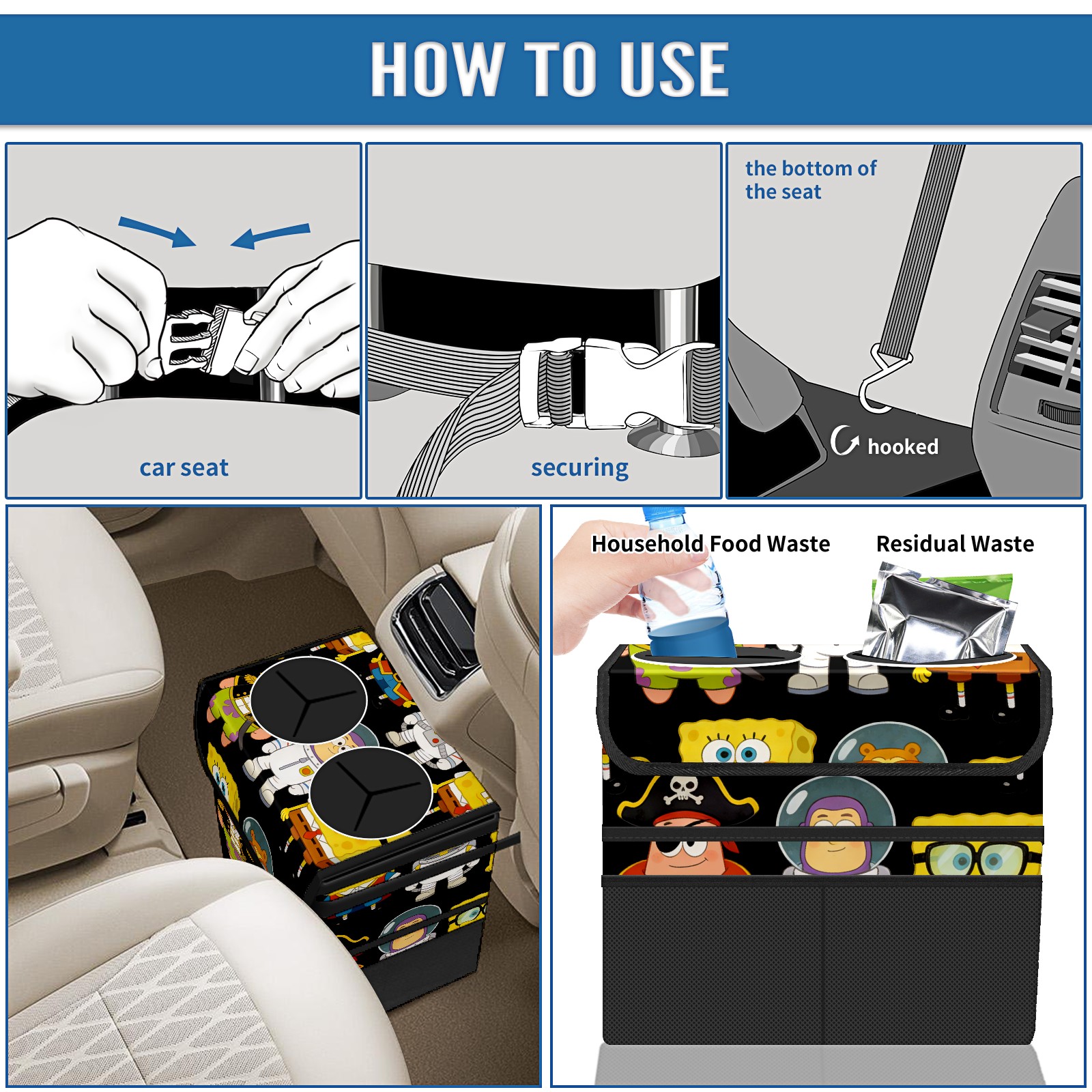 Car Trash Can with Lid, Portable Hanging Automotive Garbage Bin for Vehicles, Leakproof Waste Bag Container for SUV Truck Van Interior Auto Travel Road Trips(创作经典IP图 (59))