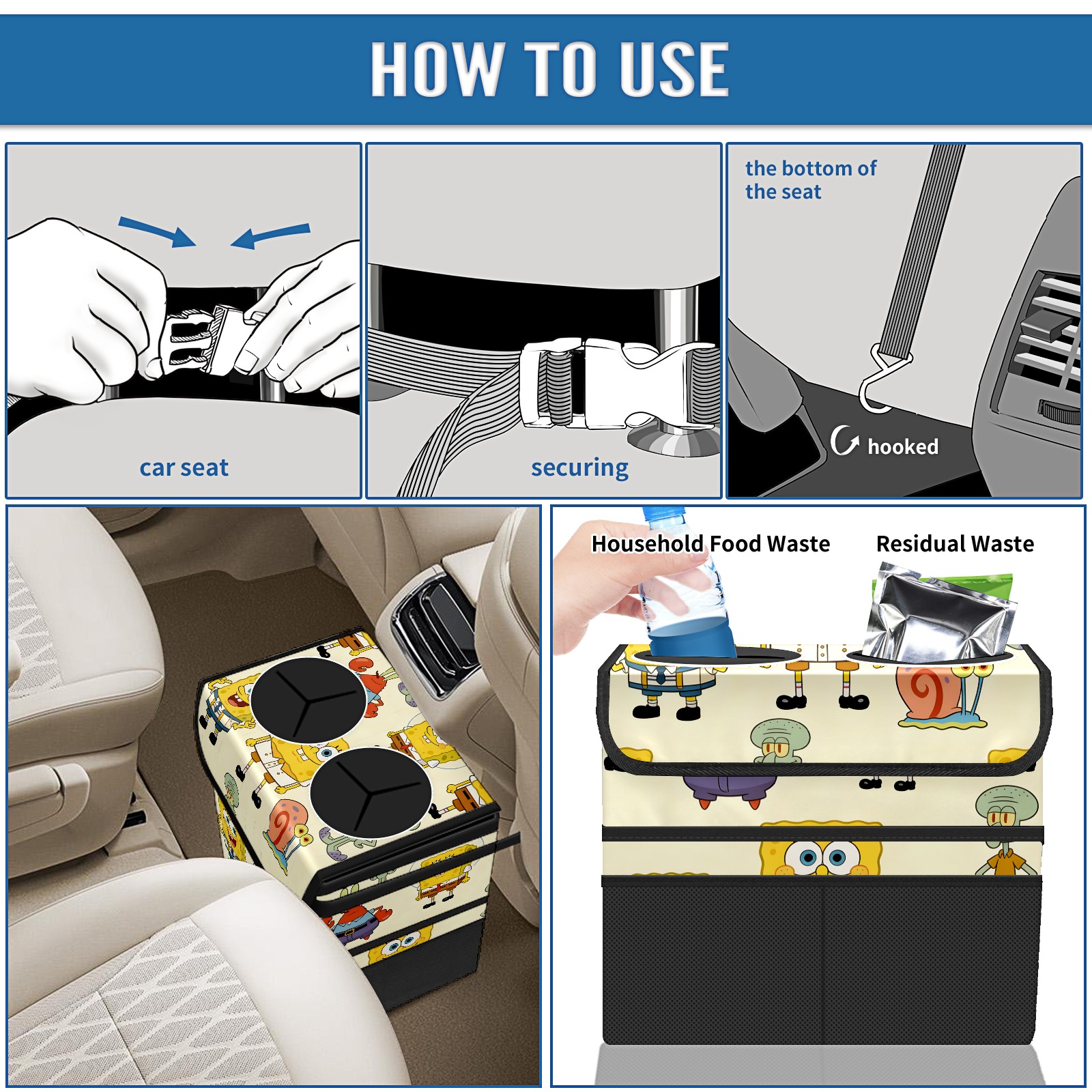 Car Trash Can with Lid, Portable Hanging Automotive Garbage Bin for Vehicles, Leakproof Waste Bag Container for SUV Truck Van Interior Auto Travel Road Trips(创作经典IP图 (48))