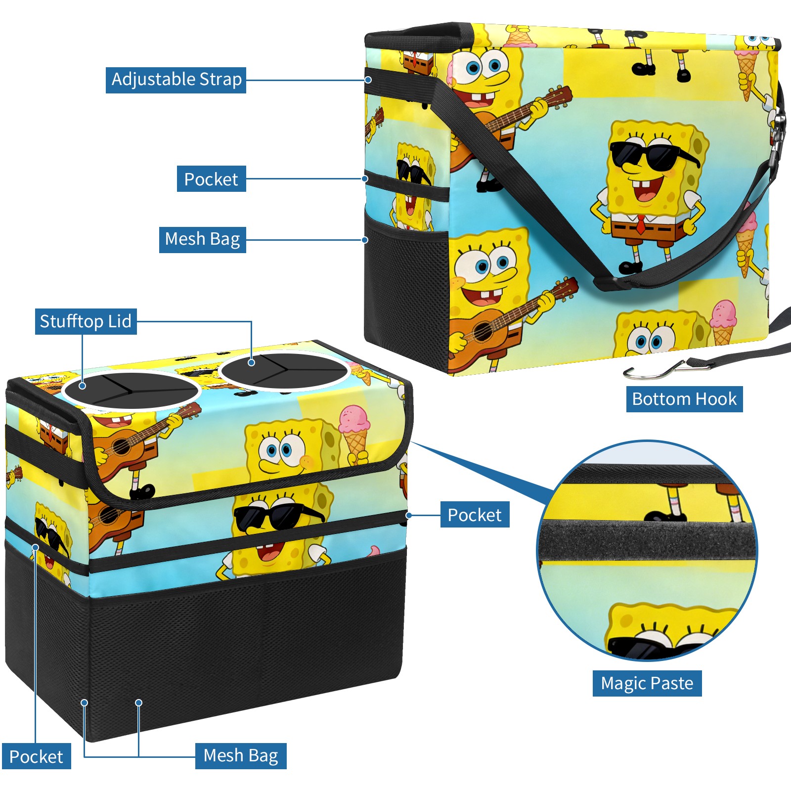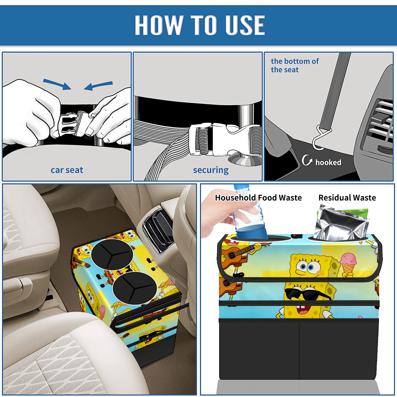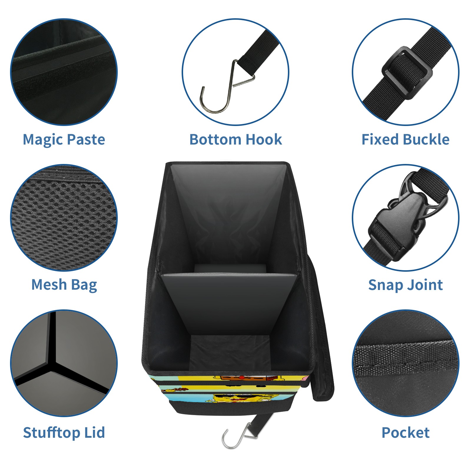 Car Trash Can with Lid, Portable Hanging Automotive Garbage Bin for Vehicles, Leakproof Waste Bag Container for SUV Truck Van Interior Auto Travel Road Trips(创作经典IP图 (45))