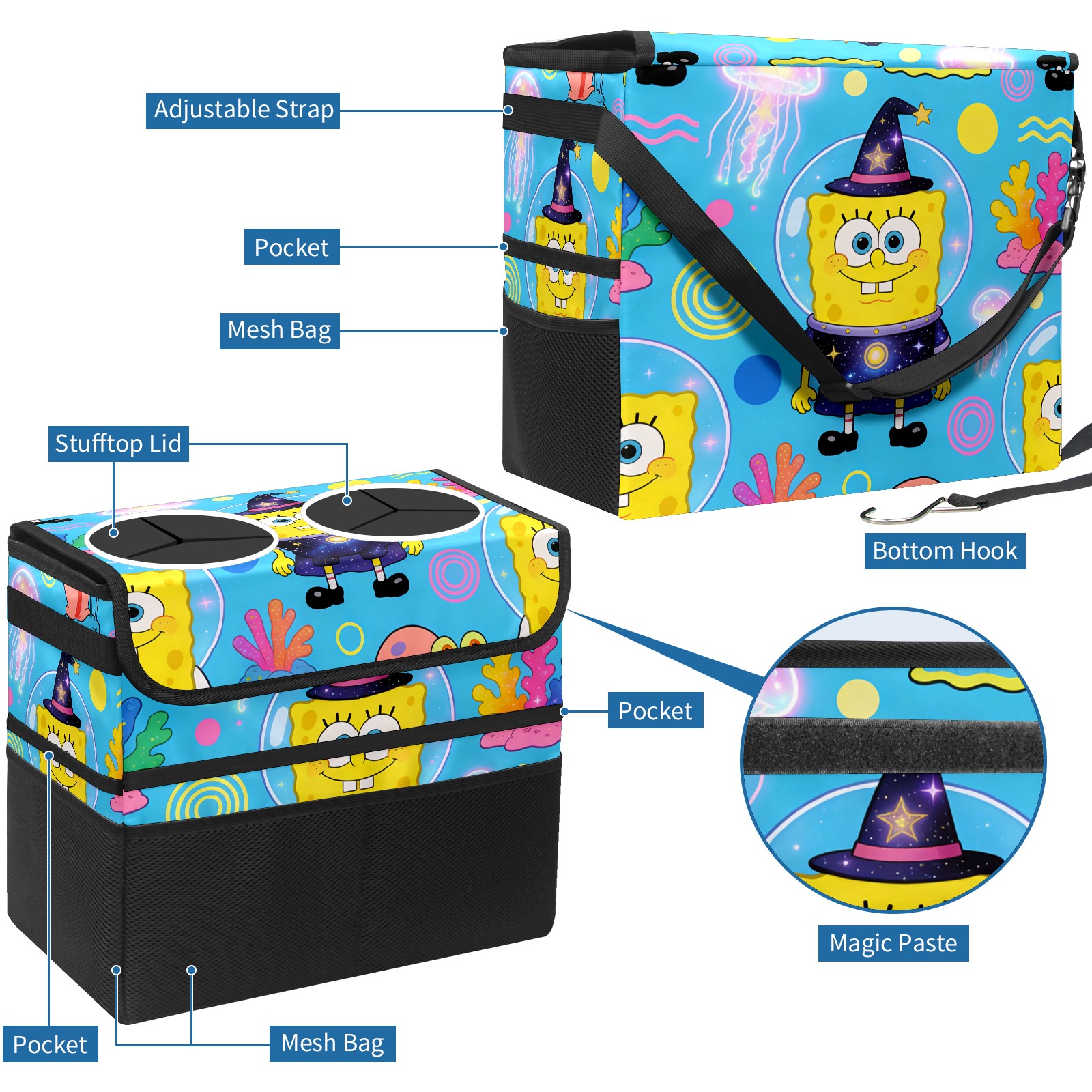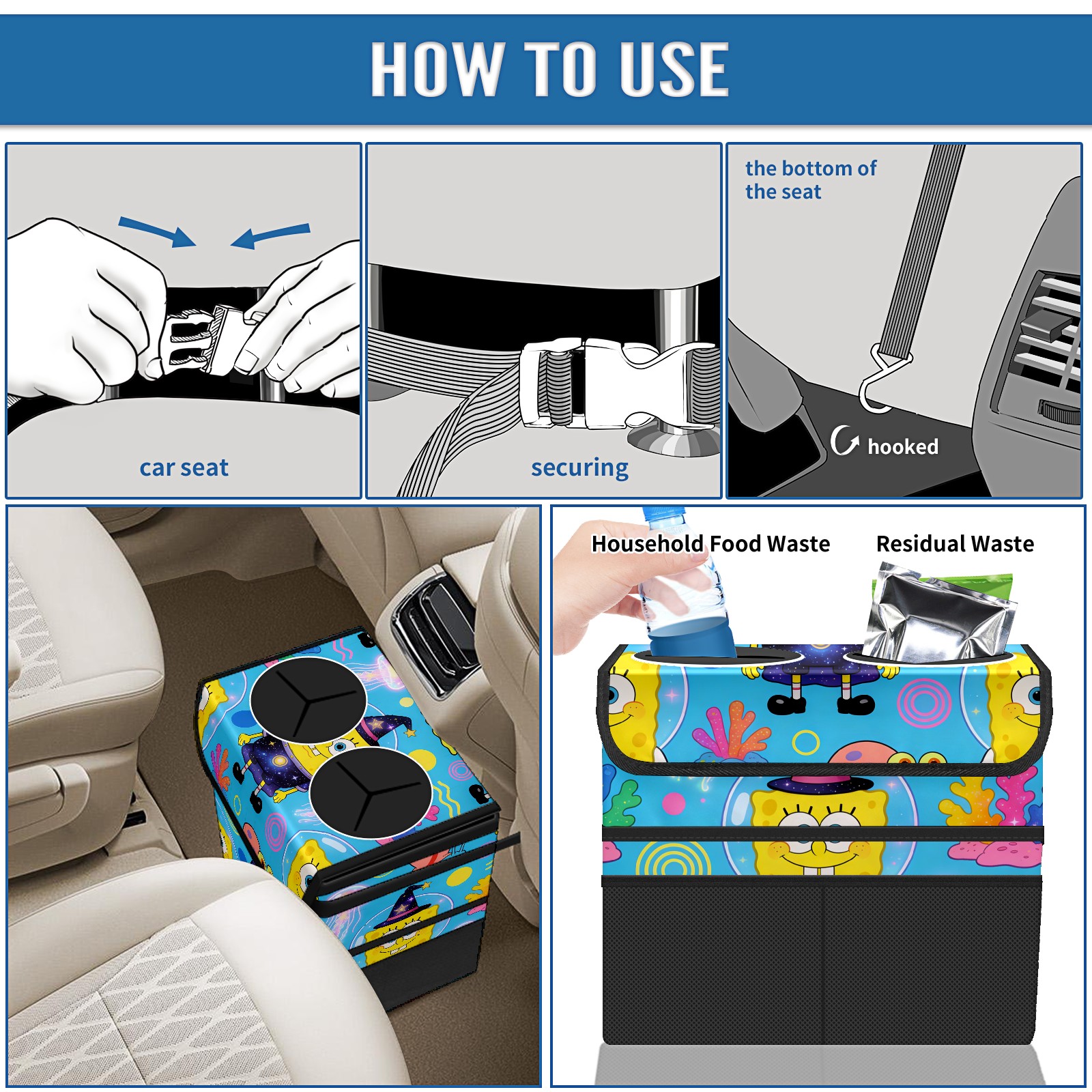 Car Trash Can with Lid, Portable Hanging Automotive Garbage Bin for Vehicles, Leakproof Waste Bag Container for SUV Truck Van Interior Auto Travel Road Trips(创作经典IP图 (39))