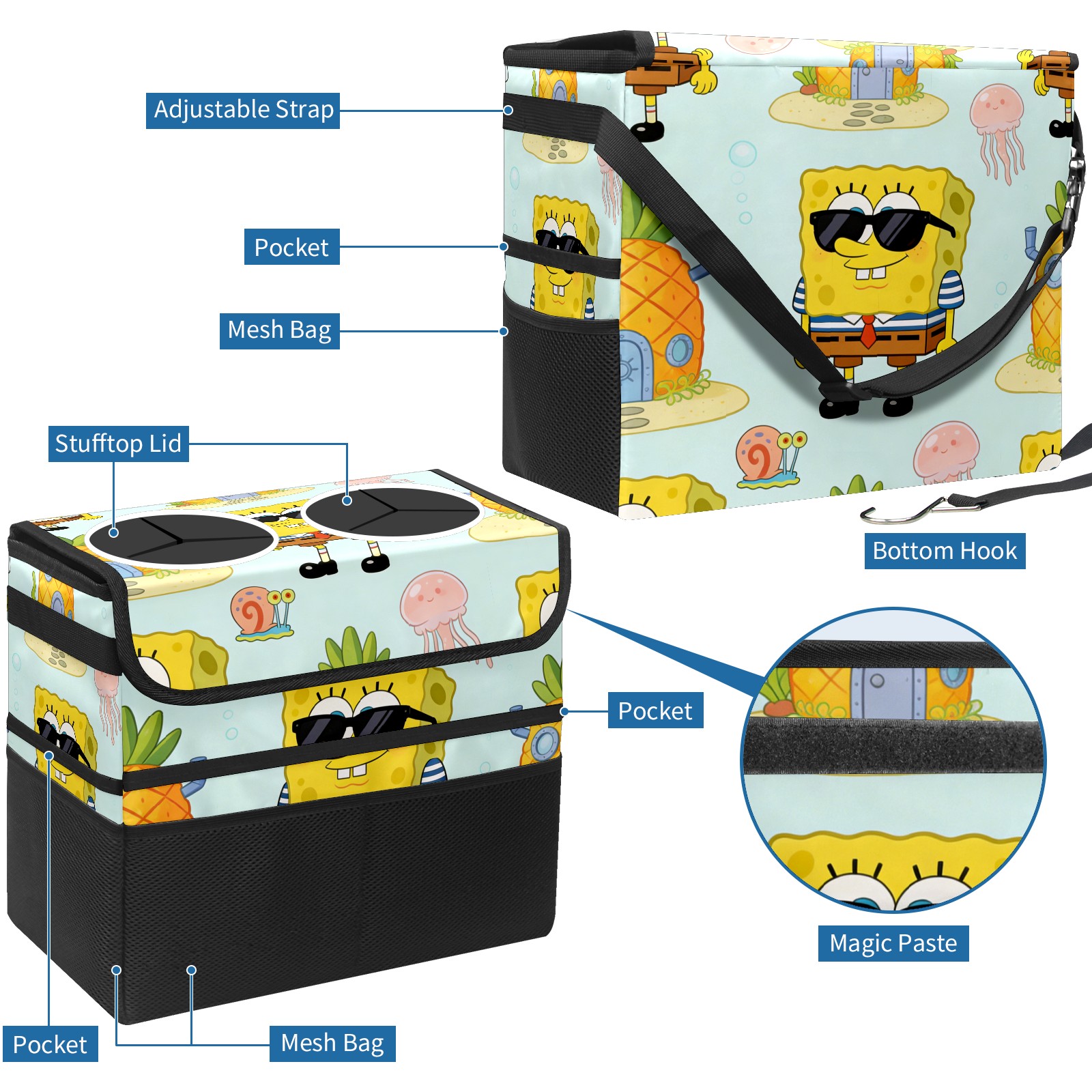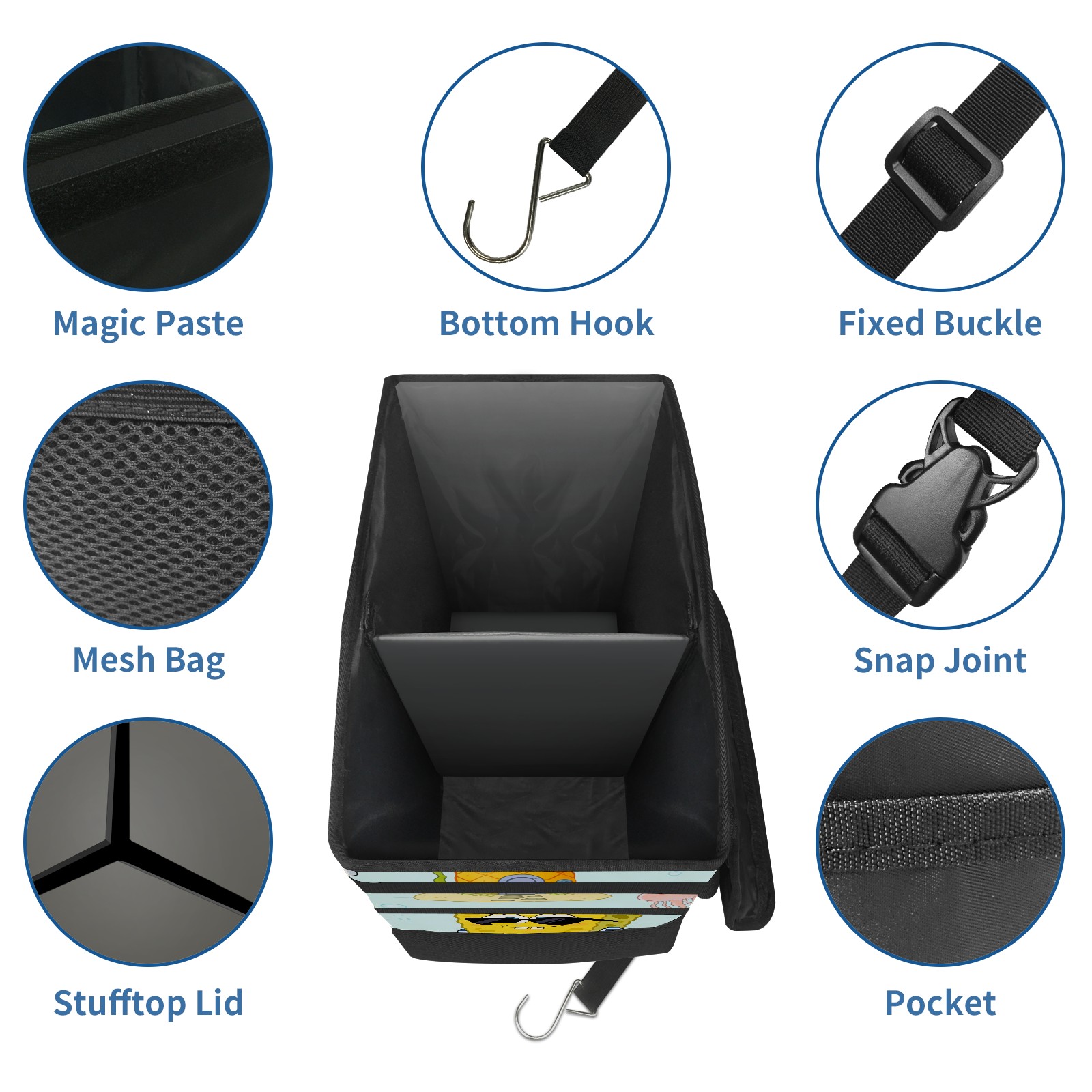 Car Trash Can with Lid, Portable Hanging Automotive Garbage Bin for Vehicles, Leakproof Waste Bag Container for SUV Truck Van Interior Auto Travel Road Trips(创作经典IP图 (41))