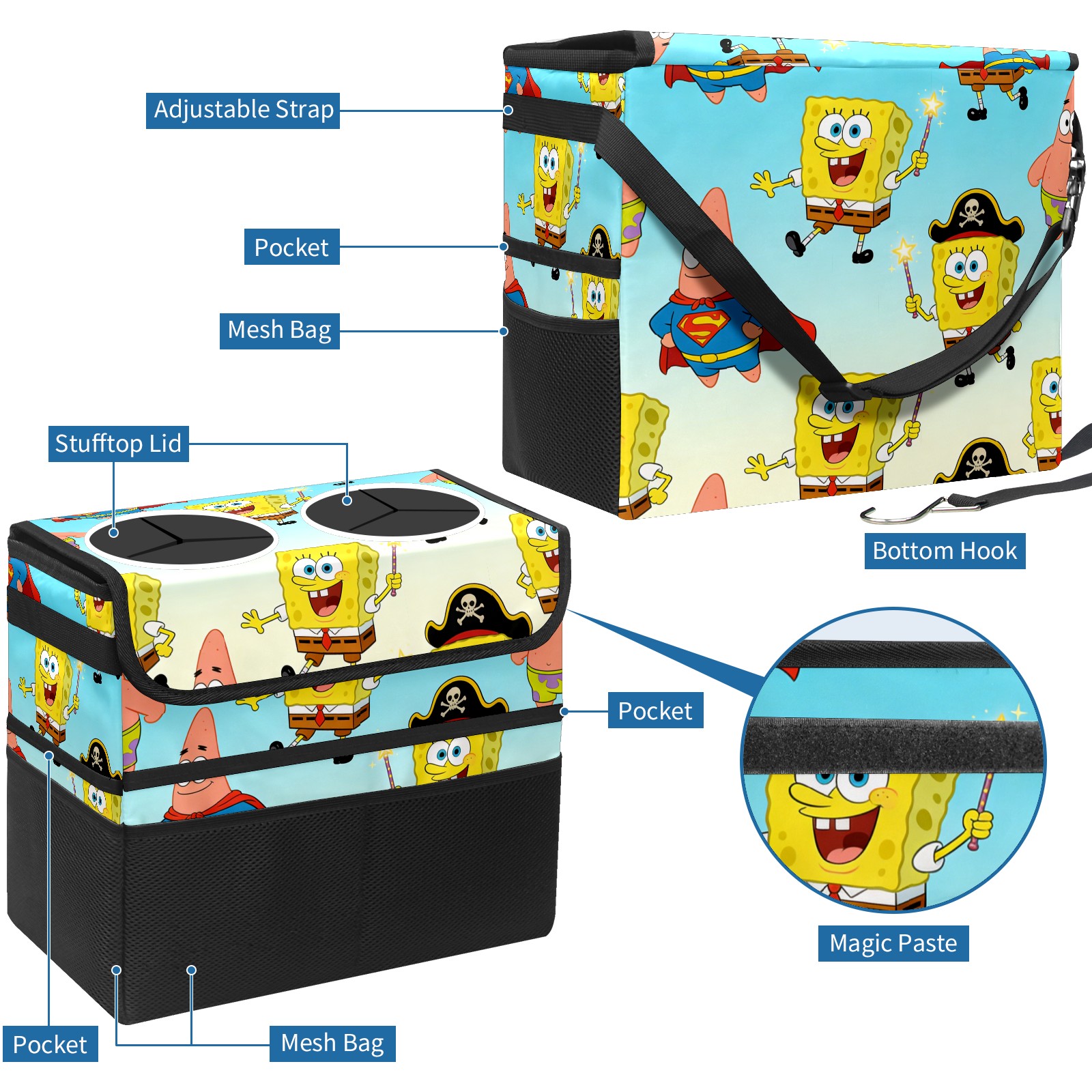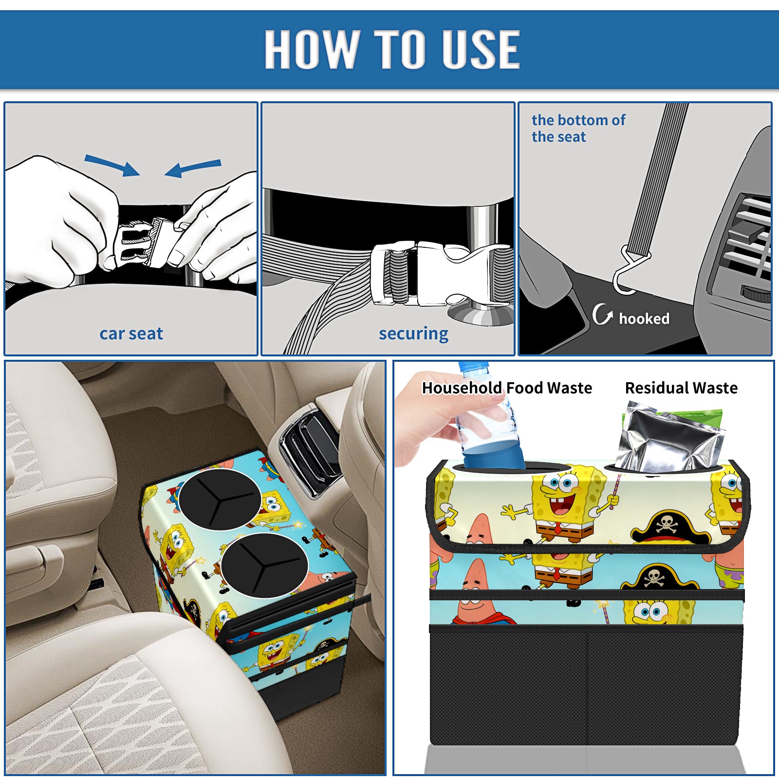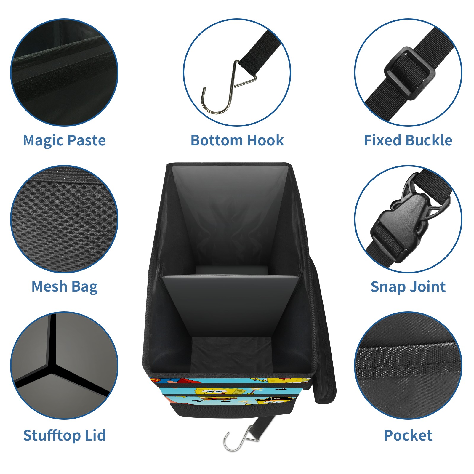 Car Trash Can with Lid, Portable Hanging Automotive Garbage Bin for Vehicles, Leakproof Waste Bag Container for SUV Truck Van Interior Auto Travel Road Trips(创作经典IP图 (34))
