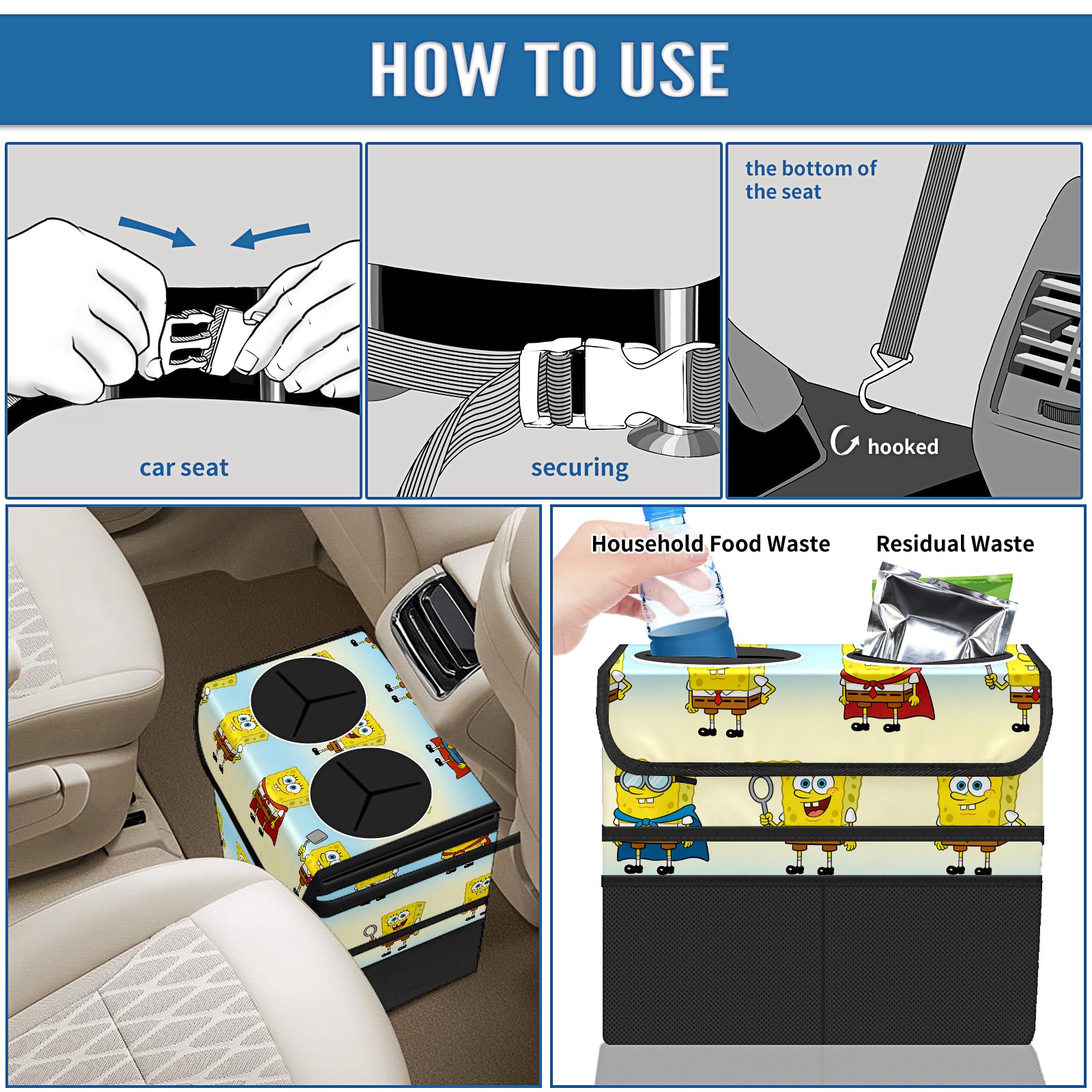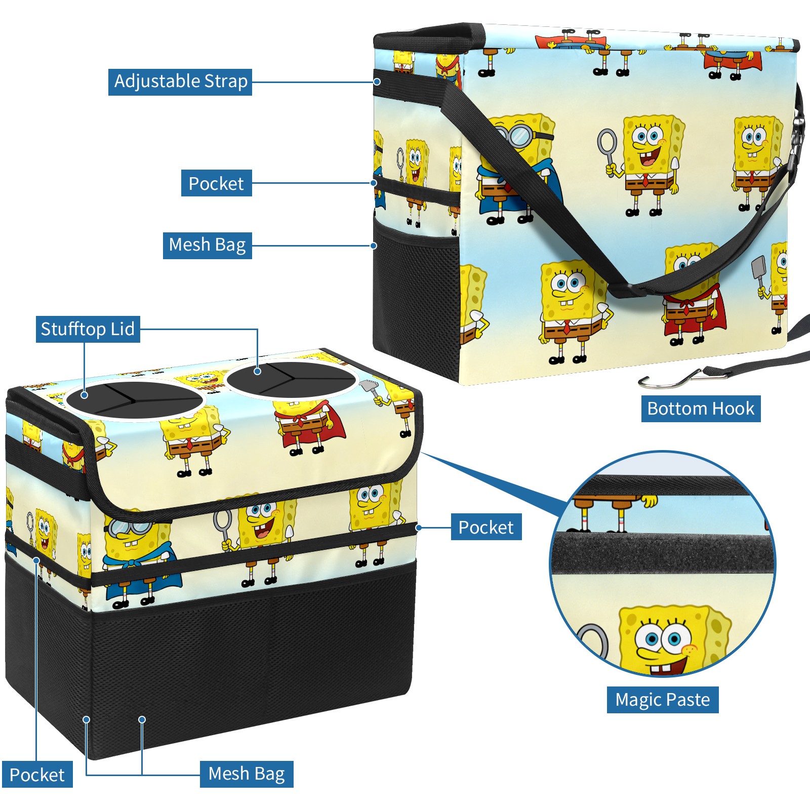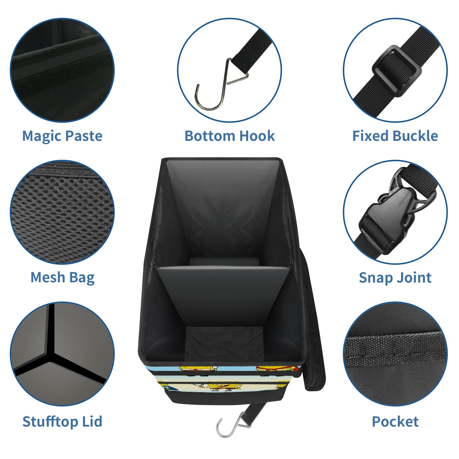 Car Trash Can with Lid, Portable Hanging Automotive Garbage Bin for Vehicles, Leakproof Waste Bag Container for SUV Truck Van Interior Auto Travel Road Trips(创作经典IP图 (27))