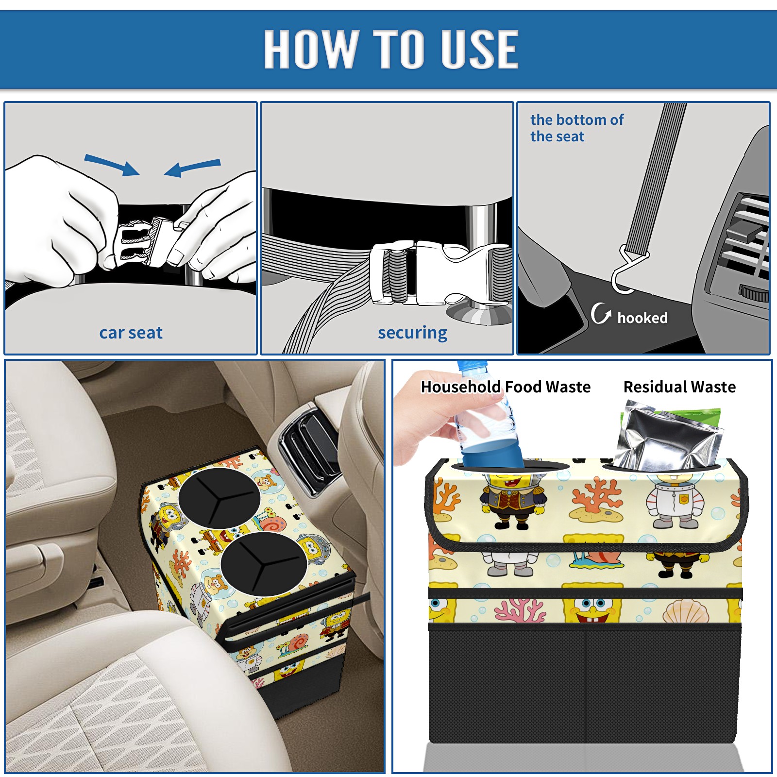 Car Trash Can with Lid, Portable Hanging Automotive Garbage Bin for Vehicles, Leakproof Waste Bag Container for SUV Truck Van Interior Auto Travel Road Trips(创作经典IP图 (11))