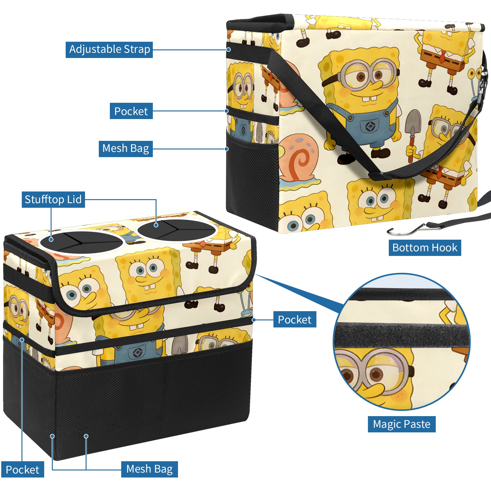 Car Trash Can with Lid, Portable Hanging Automotive Garbage Bin for Vehicles, Leakproof Waste Bag Container for SUV Truck Van Interior Auto Travel Road Trips(创作经典IP图 (16))
