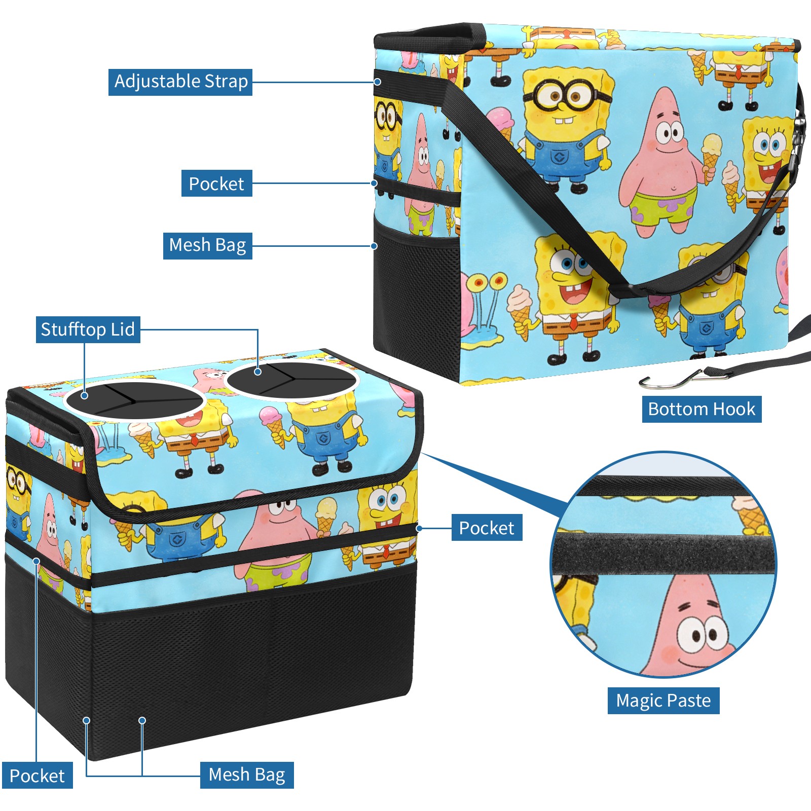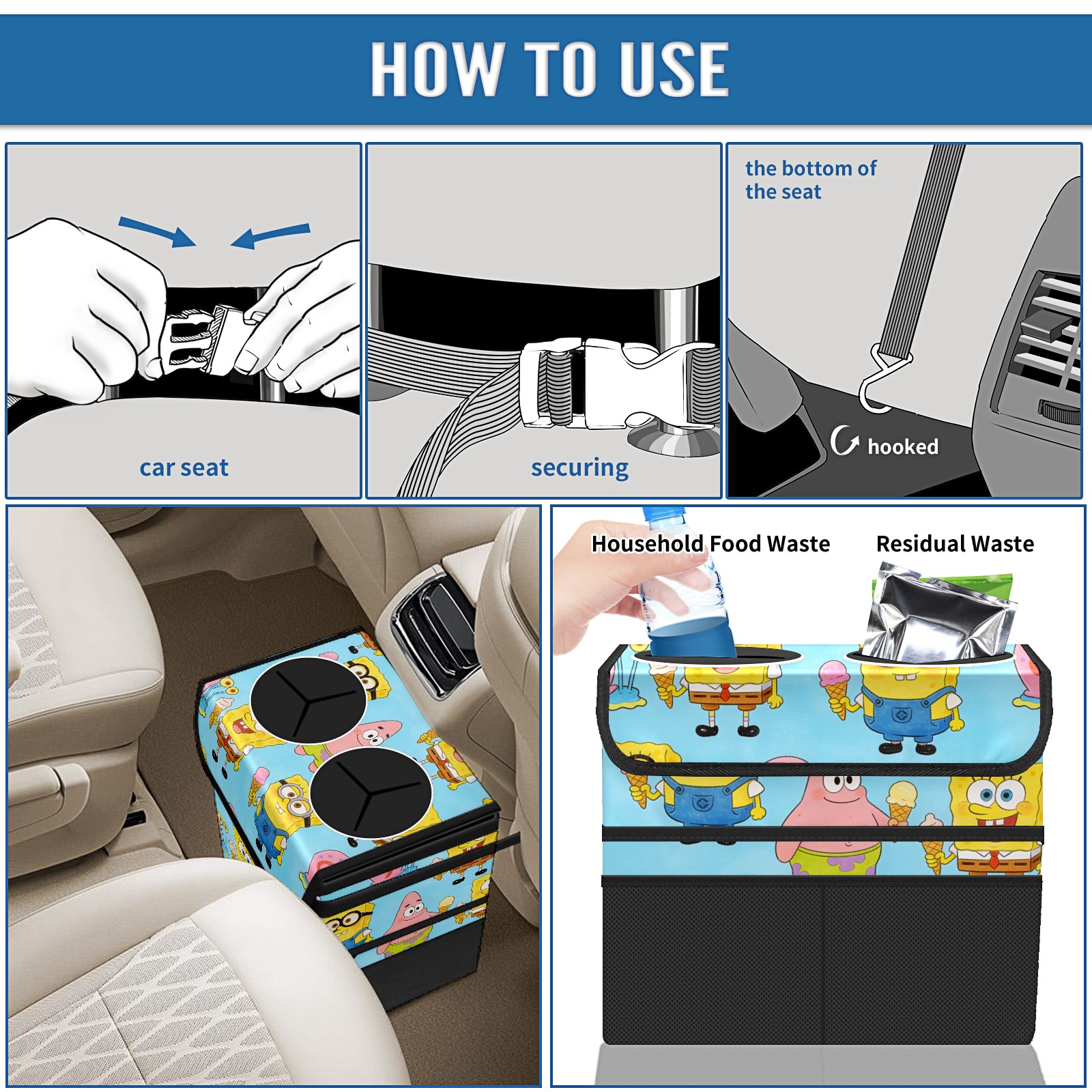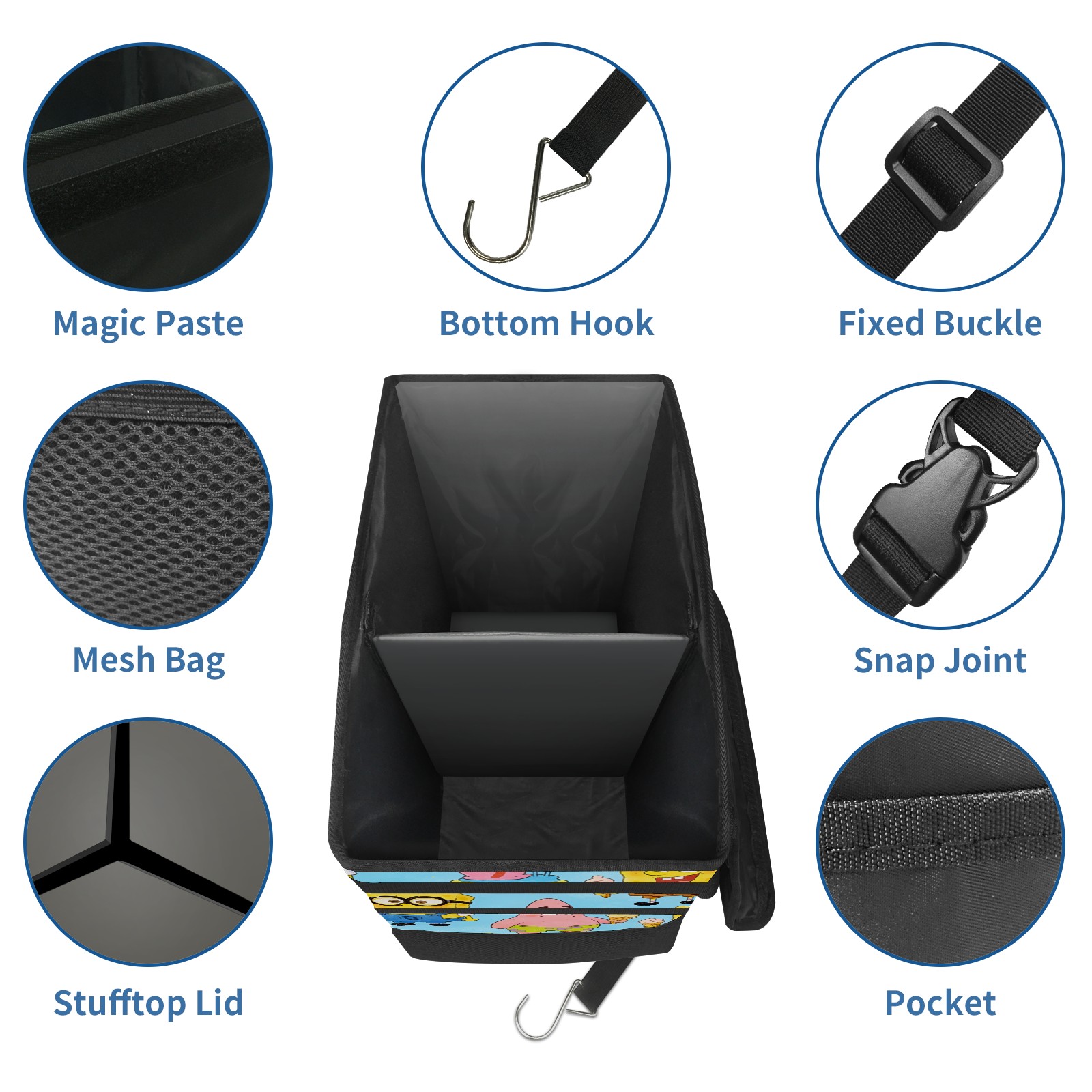 Car Trash Can with Lid, Portable Hanging Automotive Garbage Bin for Vehicles, Leakproof Waste Bag Container for SUV Truck Van Interior Auto Travel Road Trips(创作经典IP图 (9))