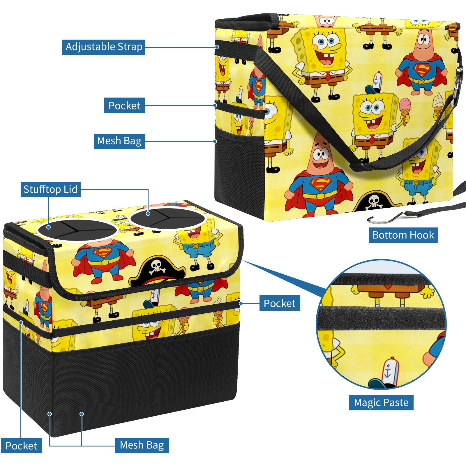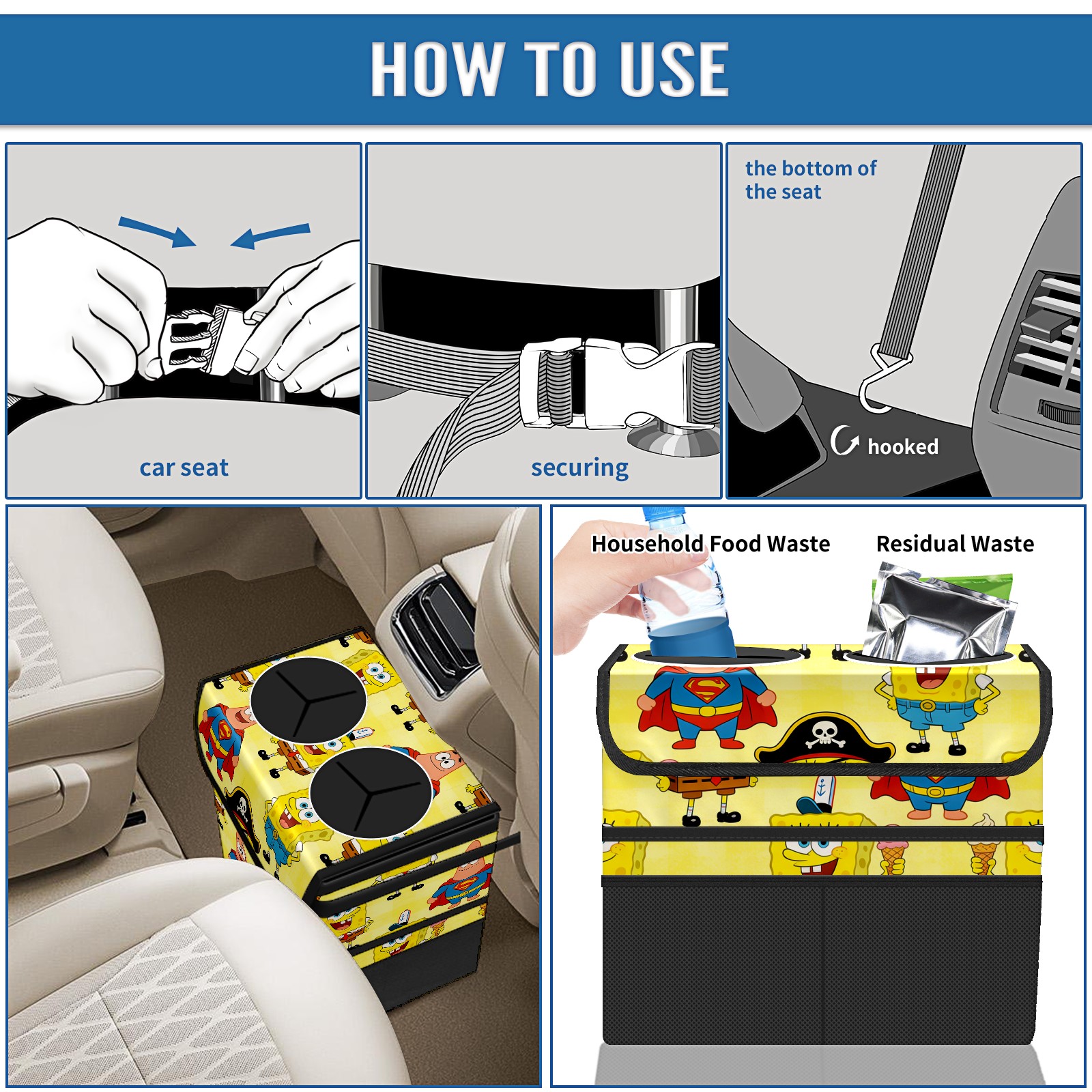 Car Trash Can with Lid, Portable Hanging Automotive Garbage Bin for Vehicles, Leakproof Waste Bag Container for SUV Truck Van Interior Auto Travel Road Trips(创作经典IP图 (8))