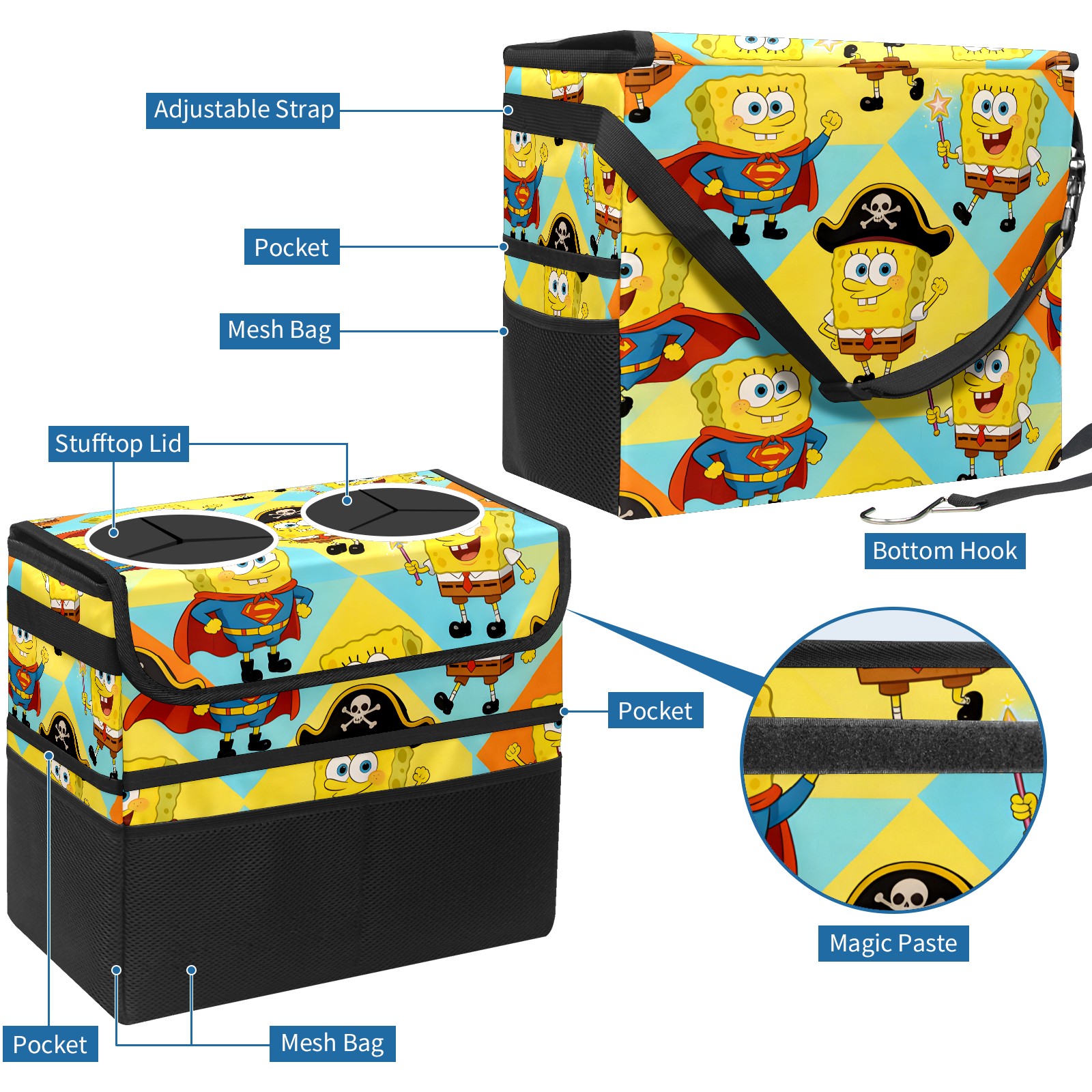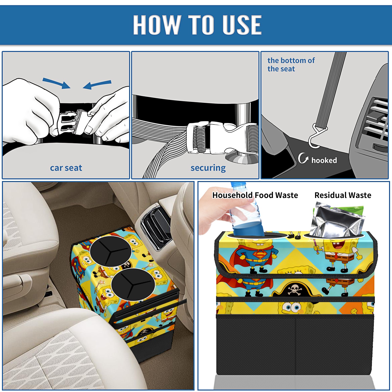 Car Trash Can with Lid, Portable Hanging Automotive Garbage Bin for Vehicles, Leakproof Waste Bag Container for SUV Truck Van Interior Auto Travel Road Trips(创作经典IP图 (5))