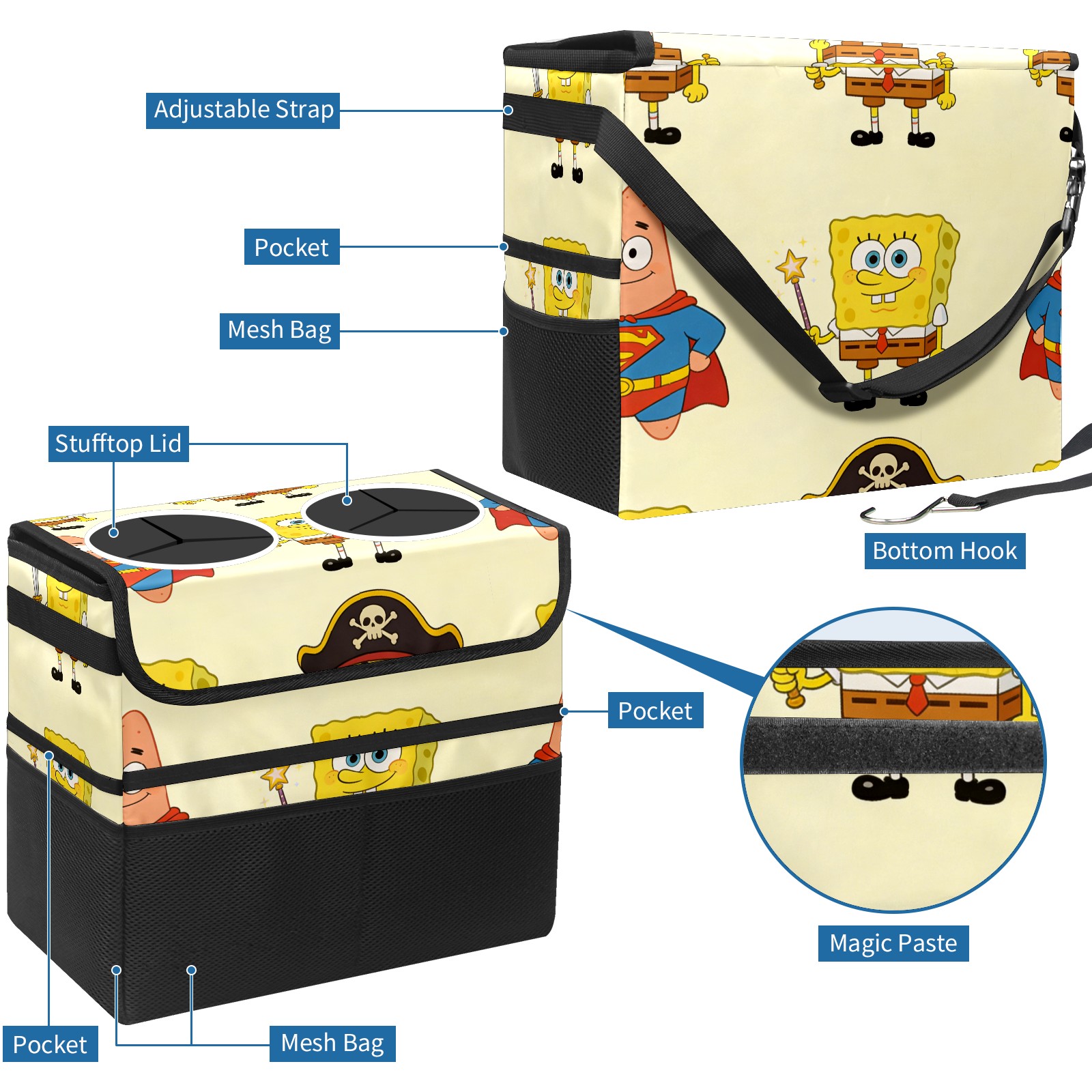 Car Trash Can with Lid, Portable Hanging Automotive Garbage Bin for Vehicles, Leakproof Waste Bag Container for SUV Truck Van Interior Auto Travel Road Trips(创作经典IP图 (3))