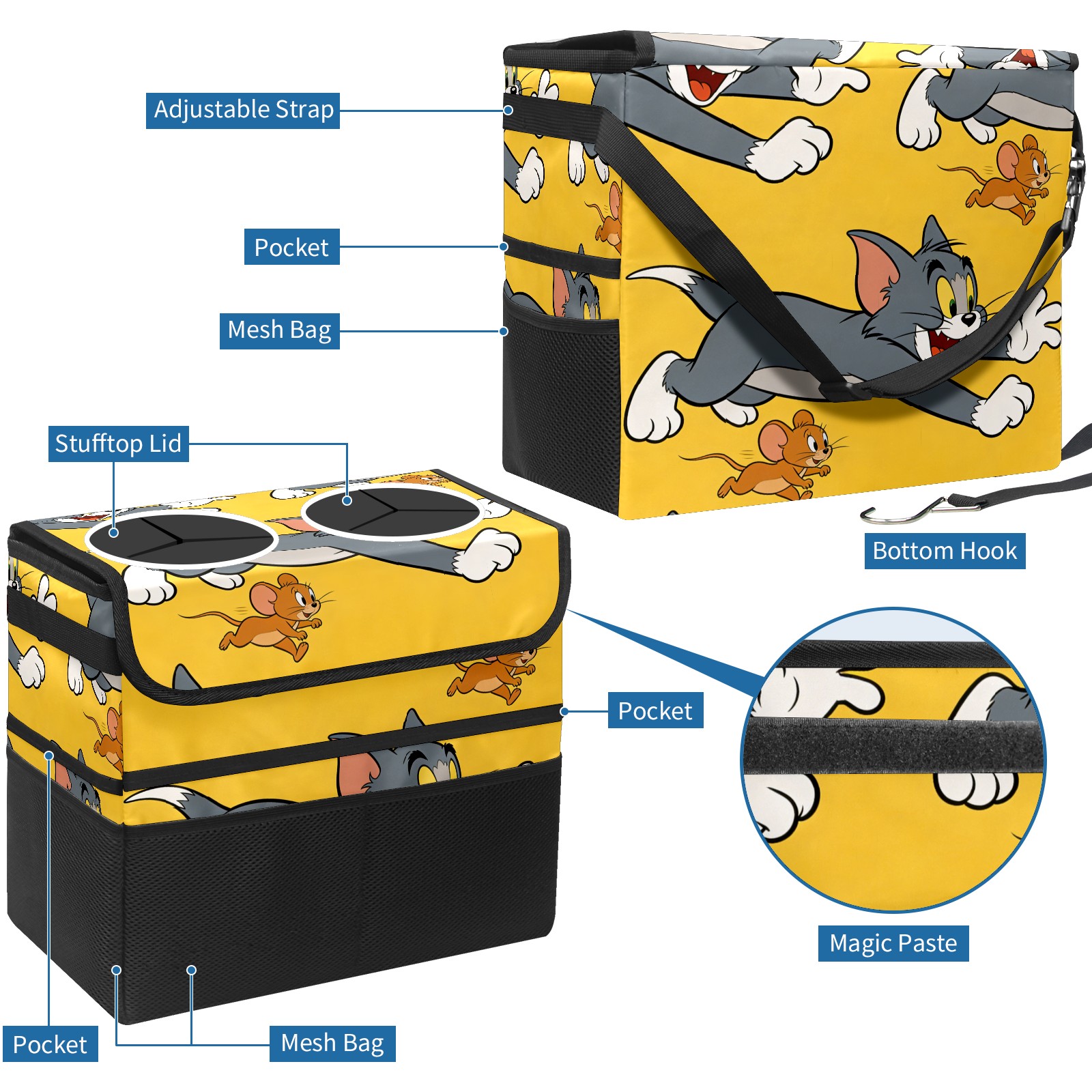 Car Trash Can with Lid, Portable Hanging Automotive Garbage Bin for Vehicles, Leakproof Waste Bag Container for SUV Truck Van Interior Auto Travel Road Trips(创作经典IP图 (195))