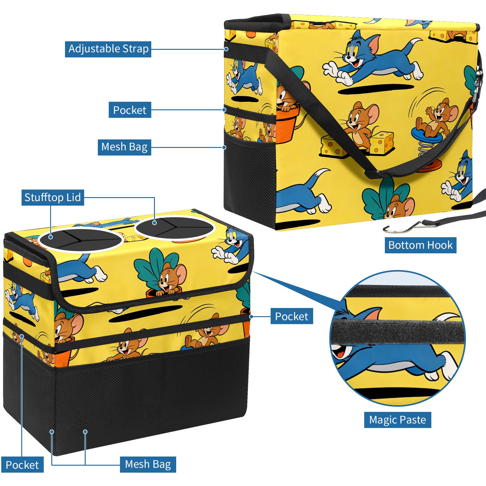 Car Trash Can with Lid, Portable Hanging Automotive Garbage Bin for Vehicles, Leakproof Waste Bag Container for SUV Truck Van Interior Auto Travel Road Trips(创作经典IP图1111111)