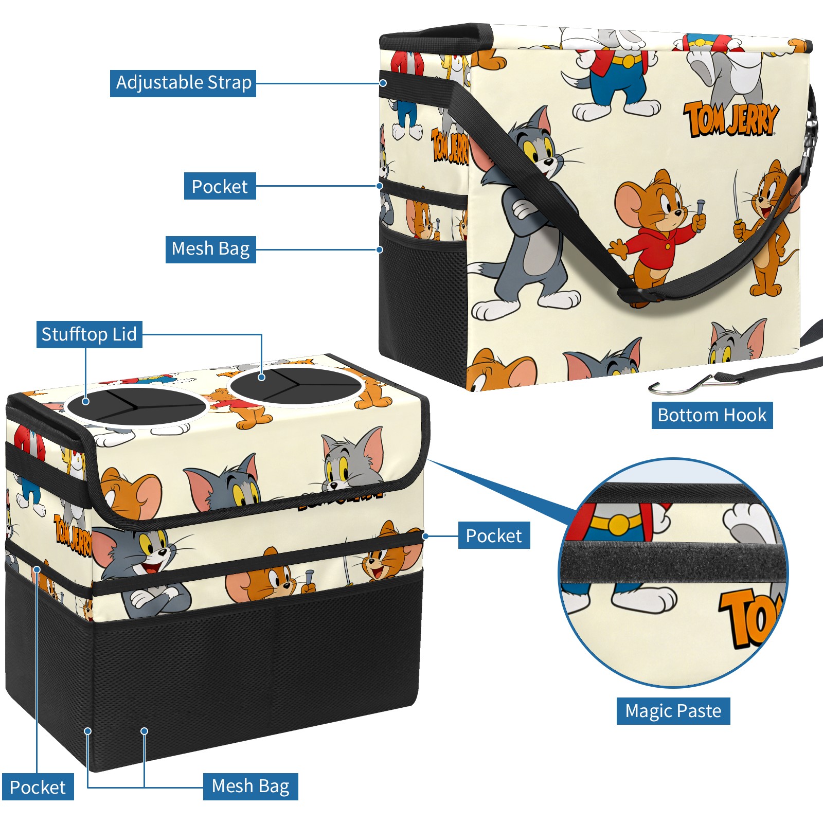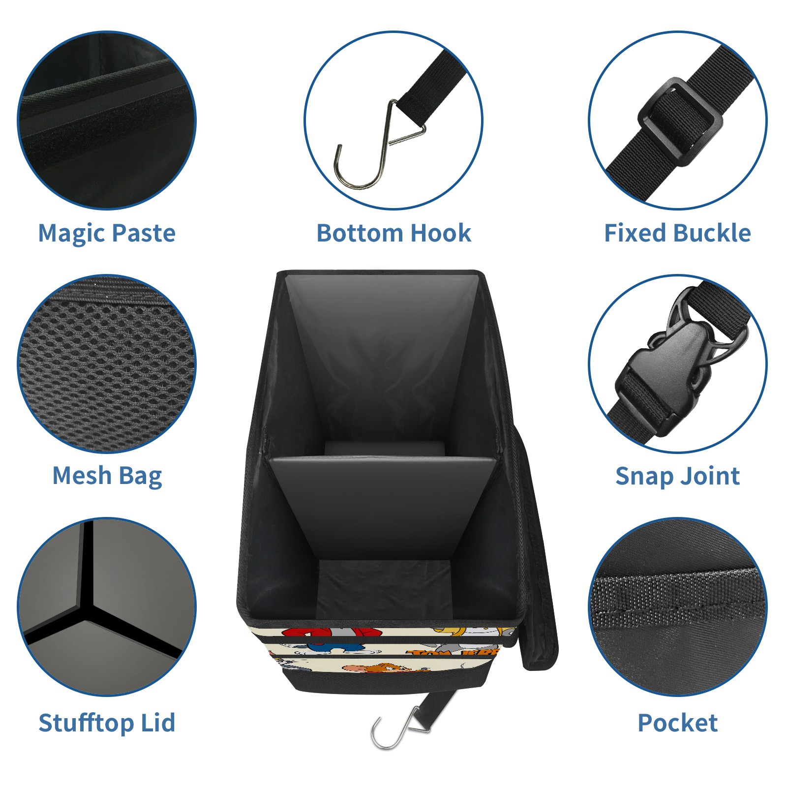 Car Trash Can with Lid, Portable Hanging Automotive Garbage Bin for Vehicles, Leakproof Waste Bag Container for SUV Truck Van Interior Auto Travel Road Trips(创作经典IP图 (157))