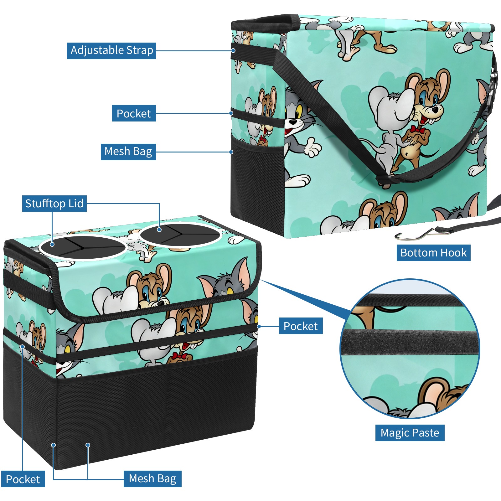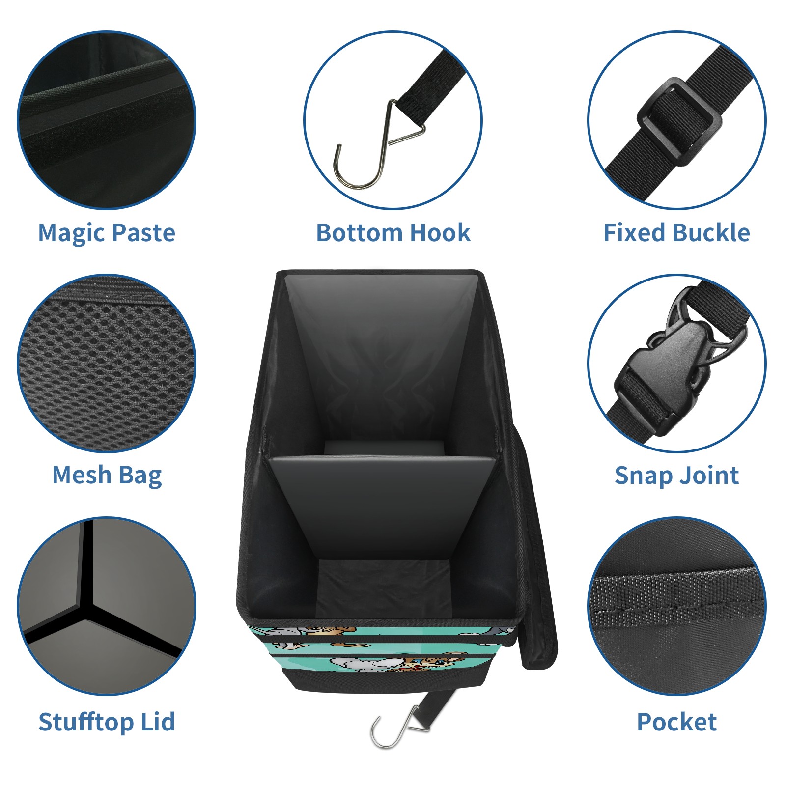 Car Trash Can with Lid, Portable Hanging Automotive Garbage Bin for Vehicles, Leakproof Waste Bag Container for SUV Truck Van Interior Auto Travel Road Trips(创作经典IP图 (163))
