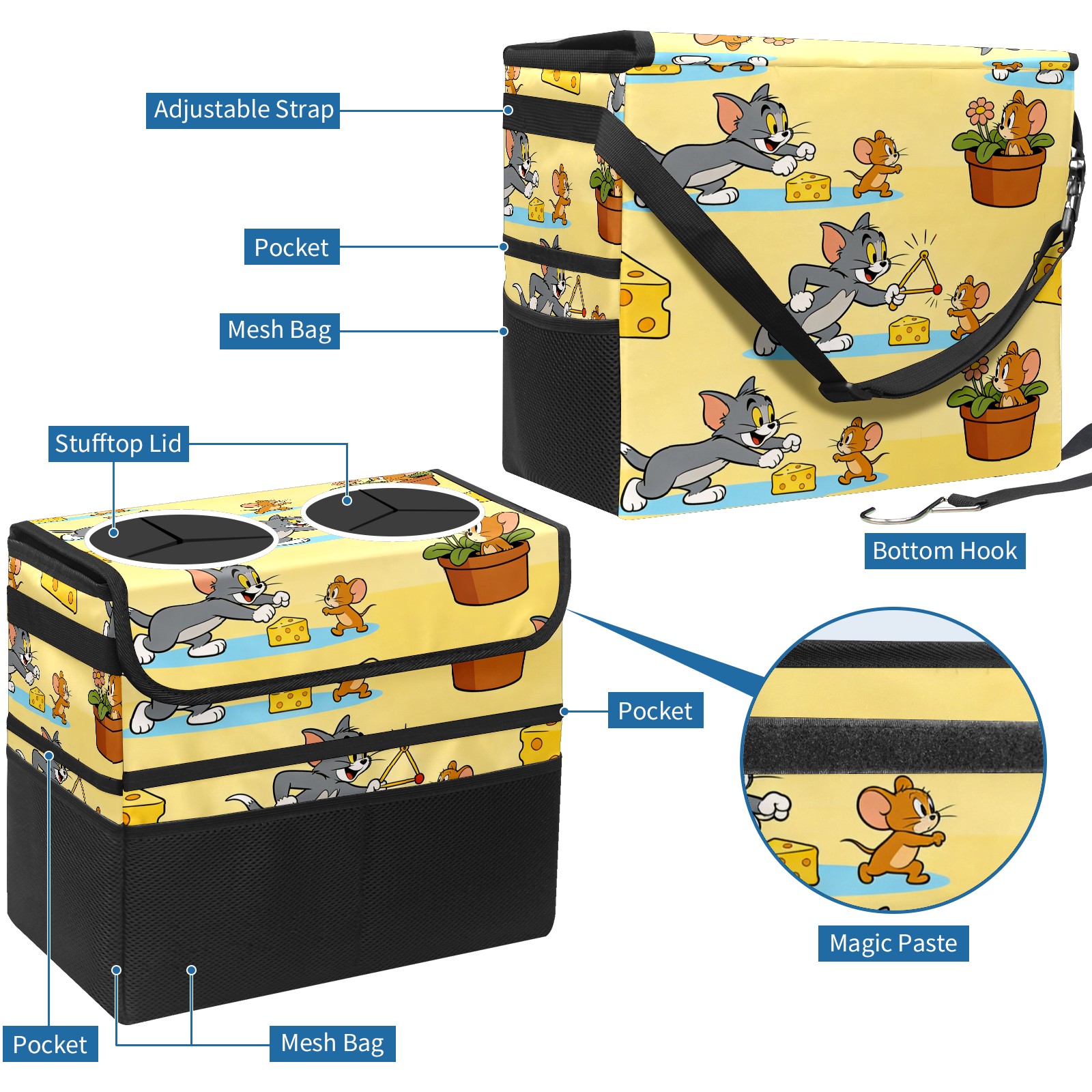 Car Trash Can with Lid, Portable Hanging Automotive Garbage Bin for Vehicles, Leakproof Waste Bag Container for SUV Truck Van Interior Auto Travel Road Trips(创作经典IP图 (150))