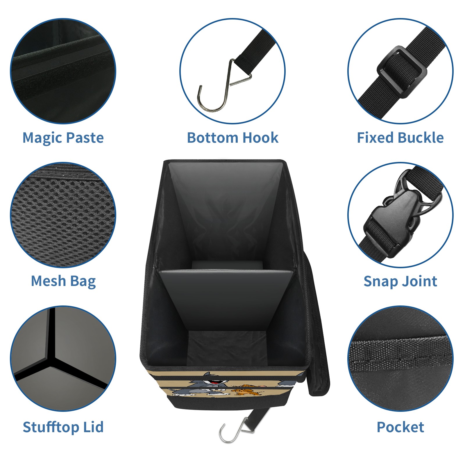 Car Trash Can with Lid, Portable Hanging Automotive Garbage Bin for Vehicles, Leakproof Waste Bag Container for SUV Truck Van Interior Auto Travel Road Trips(创作经典IP图 (142))