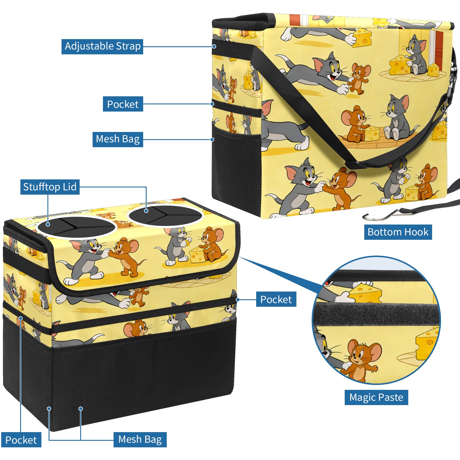 Car Trash Can with Lid, Portable Hanging Automotive Garbage Bin for Vehicles, Leakproof Waste Bag Container for SUV Truck Van Interior Auto Travel Road Trips(创作经典IP图 (137))