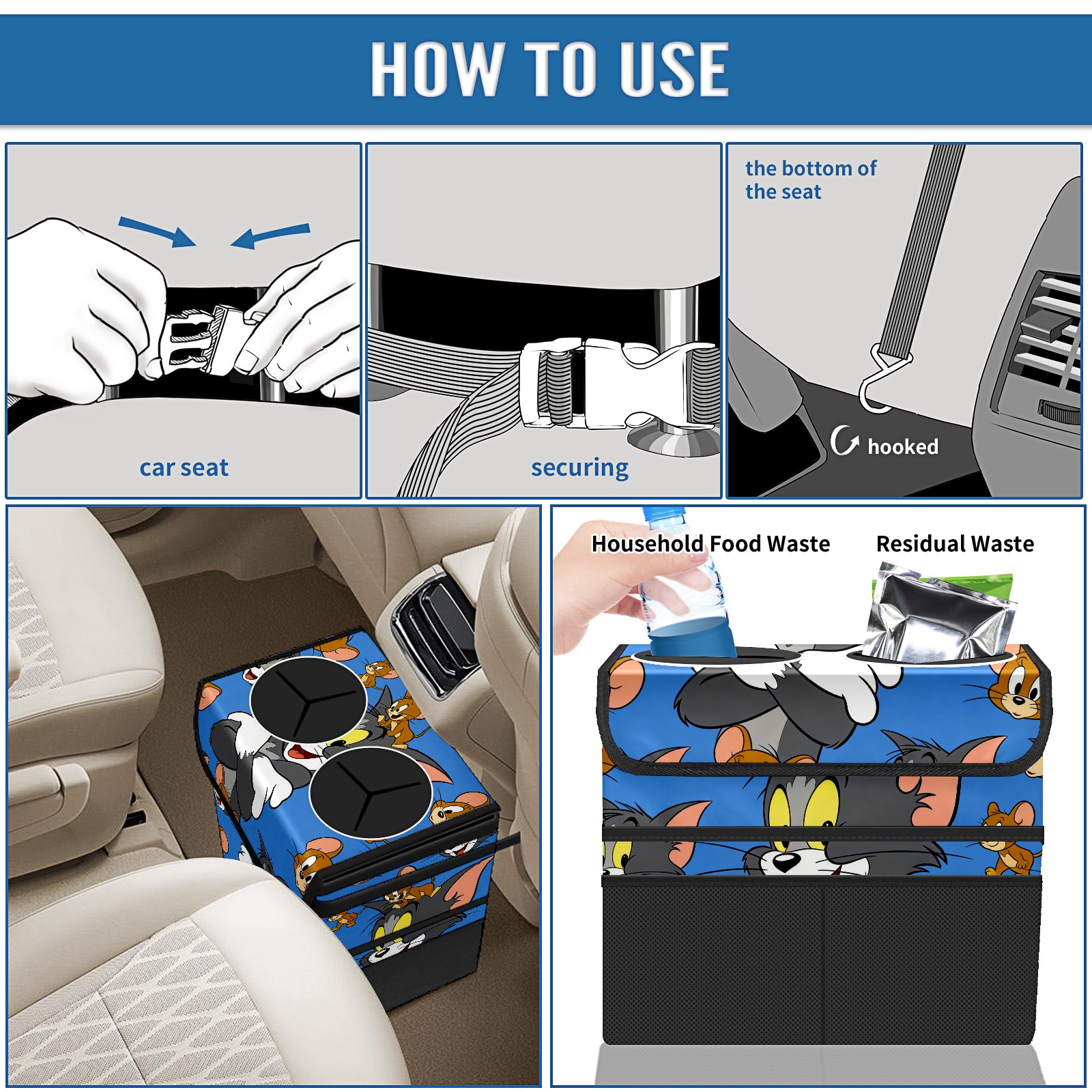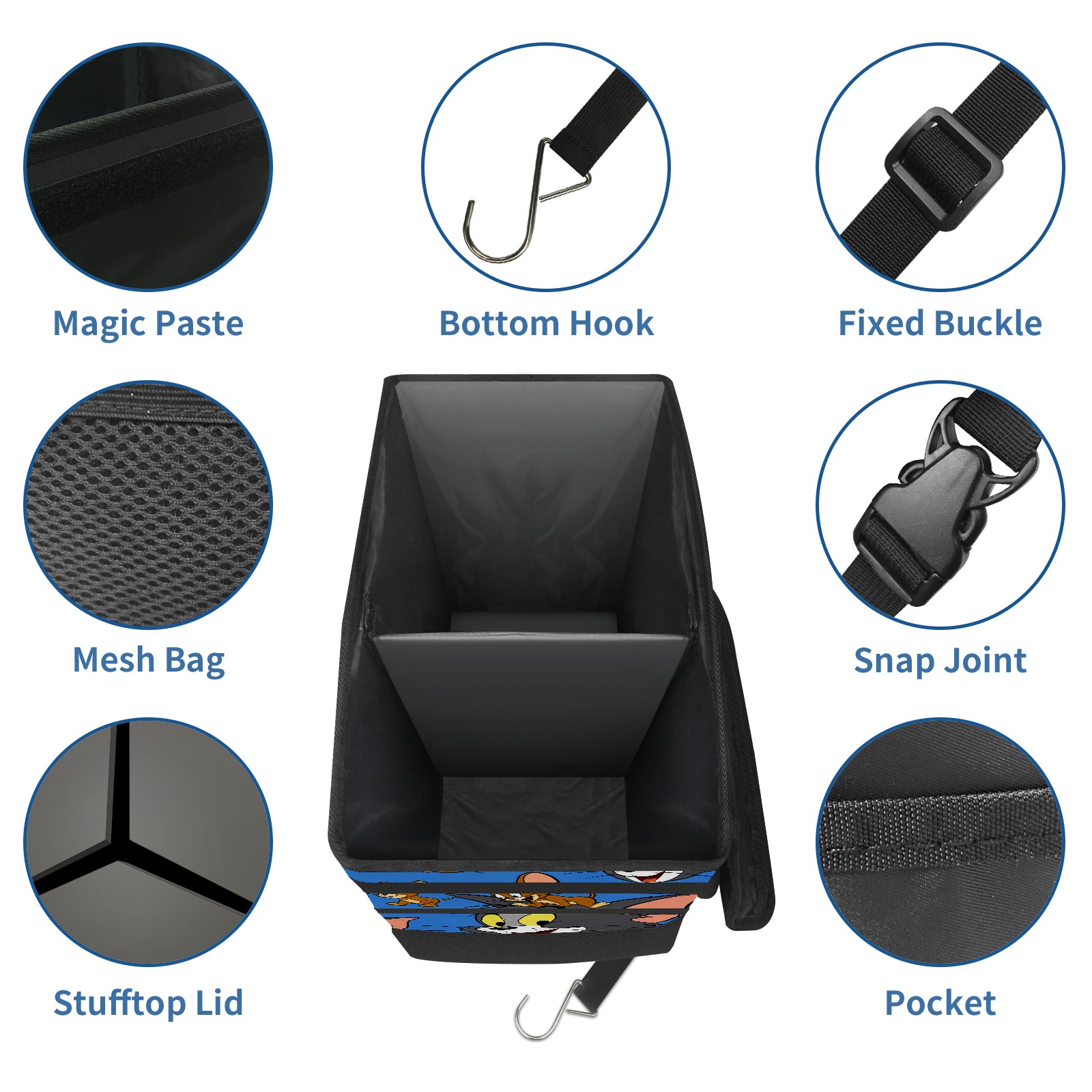 Car Trash Can with Lid, Portable Hanging Automotive Garbage Bin for Vehicles, Leakproof Waste Bag Container for SUV Truck Van Interior Auto Travel Road Trips(创作经典IP图 (133))