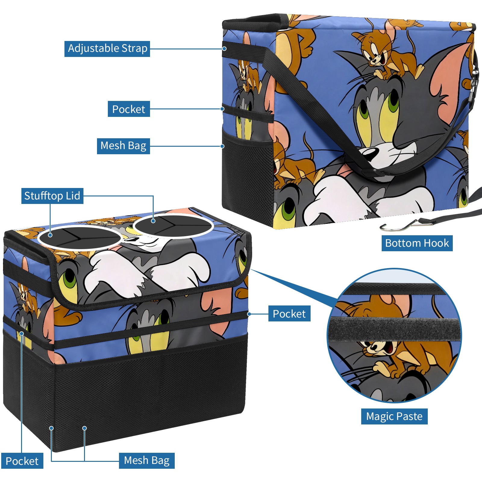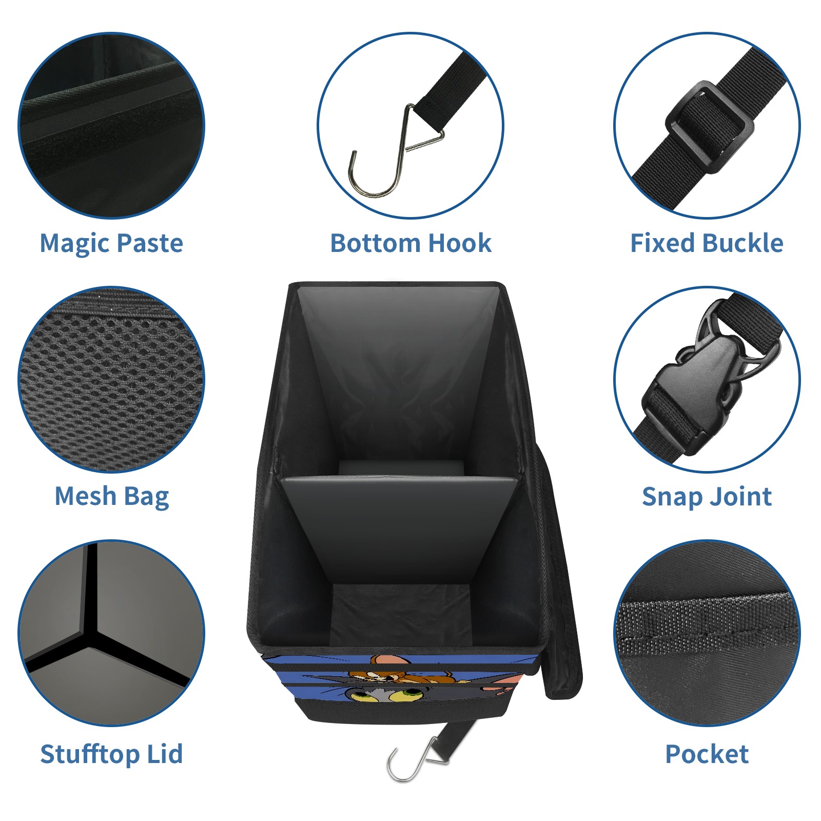 Car Trash Can with Lid, Portable Hanging Automotive Garbage Bin for Vehicles, Leakproof Waste Bag Container for SUV Truck Van Interior Auto Travel Road Trips(创作经典IP图 (94))